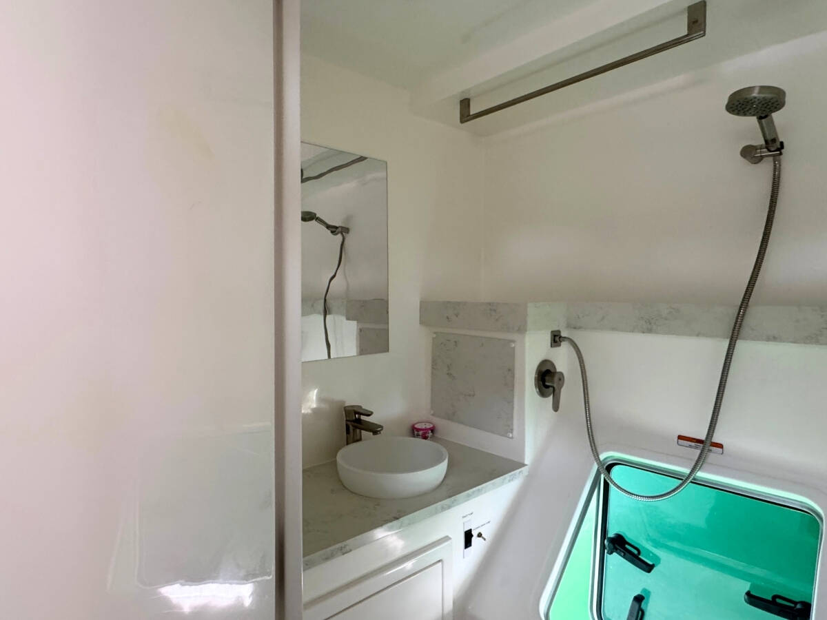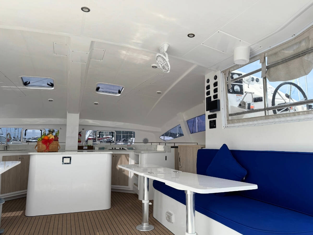 The Island Spirit 410 „Isle Phantom“ offers special comfort with the following equipment features: Cockpit cushions, Inverter, Electric toilet, Solar panels.