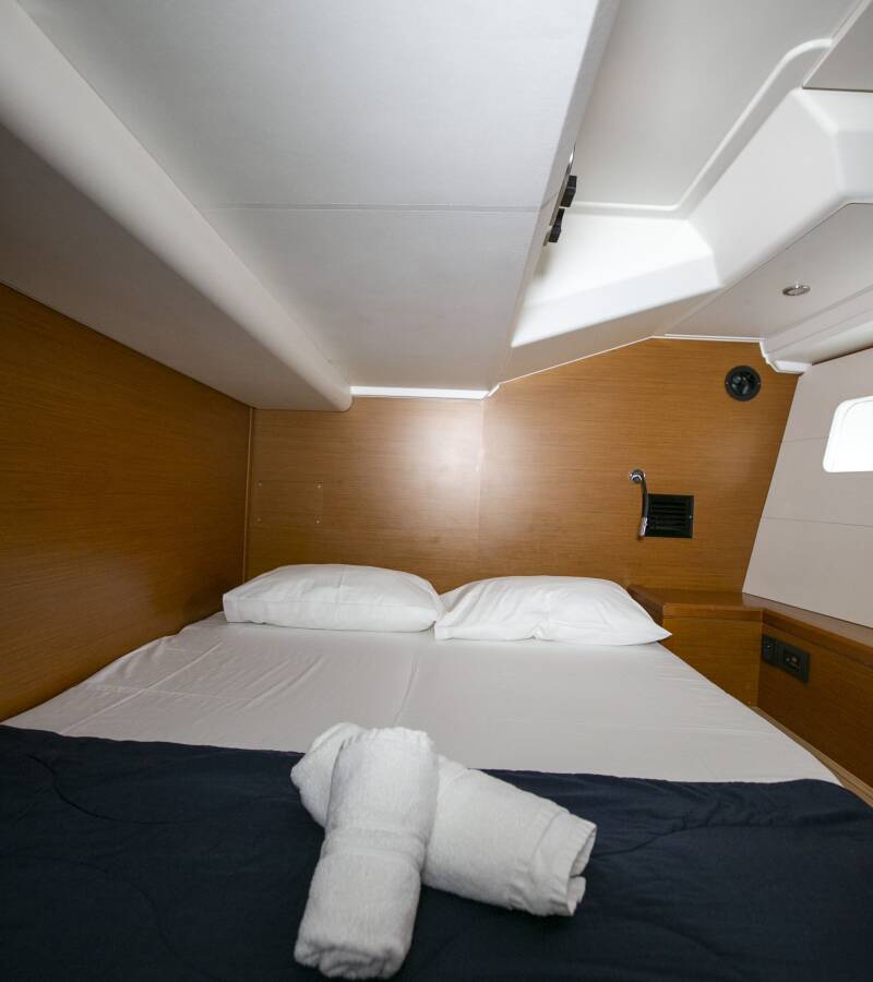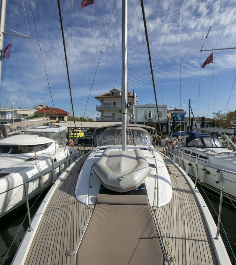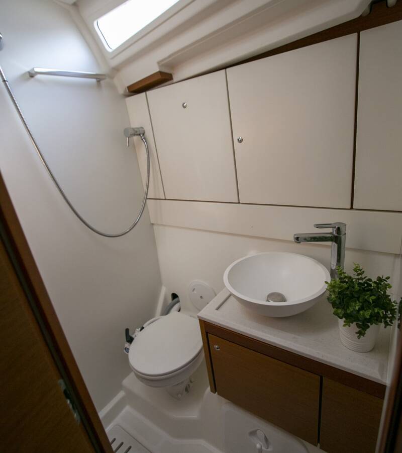 The Jeanneau 54 „Amazing Elli“ offers special comfort with the following equipment features: Bow thruster, Generator, Air Conditioning, Freezer, Inverter, Electric toilet, Solar panels.