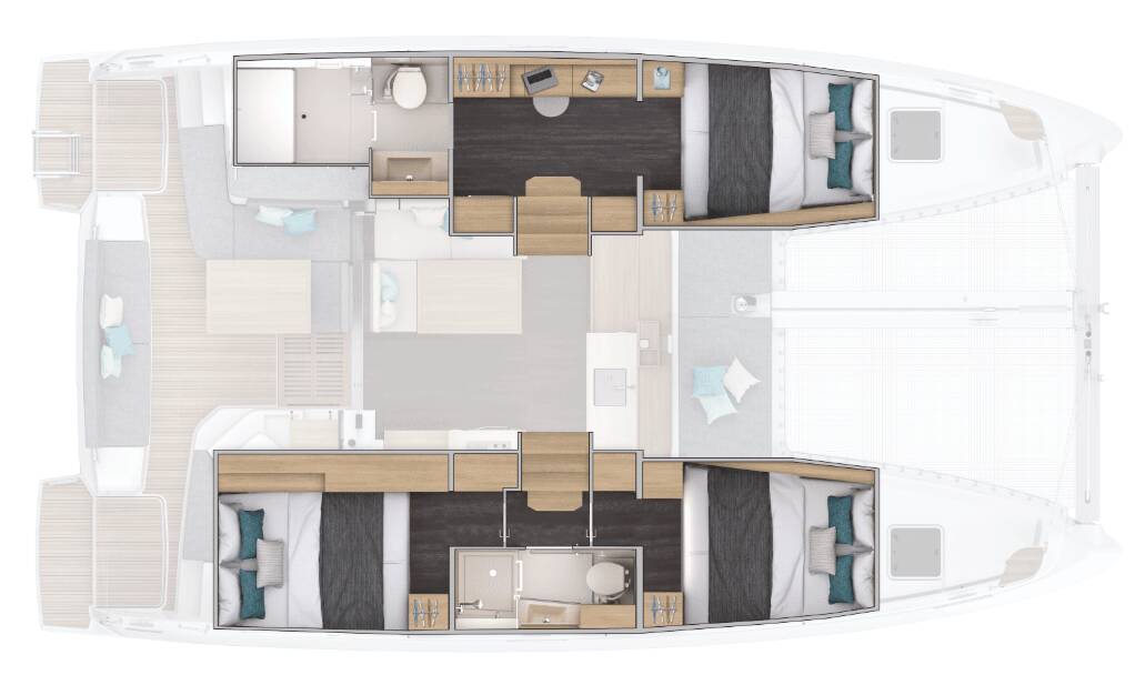 The Lagoon 38 „Tandem“ offers special comfort with the following equipment features: Freezer, Cockpit cushions, Inverter, Solar panels.