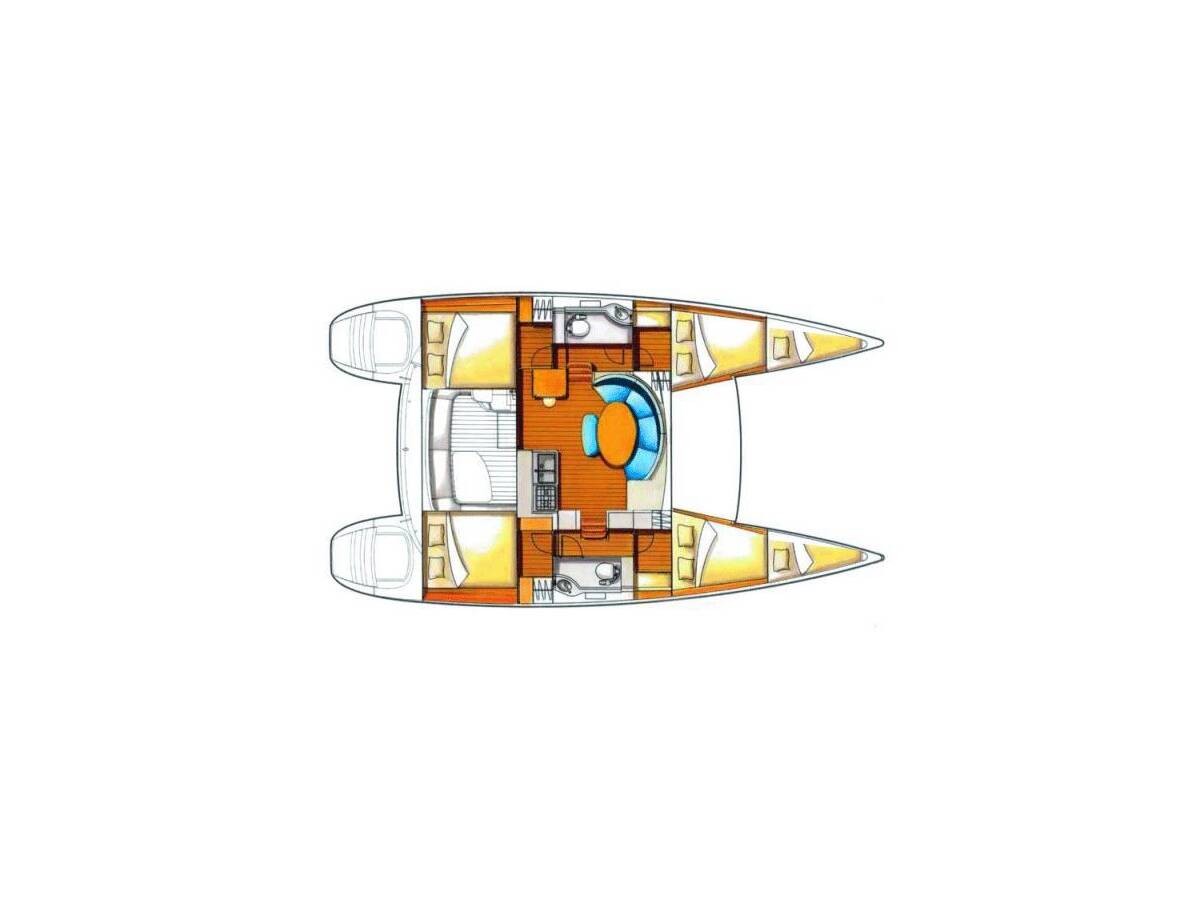 The Lagoon 380 S2 „Atenea“ is equipped with a mainsail and a genoa as well as a Autopilot, Sprayhood, Heating, GPS chart plotter - cockpit.