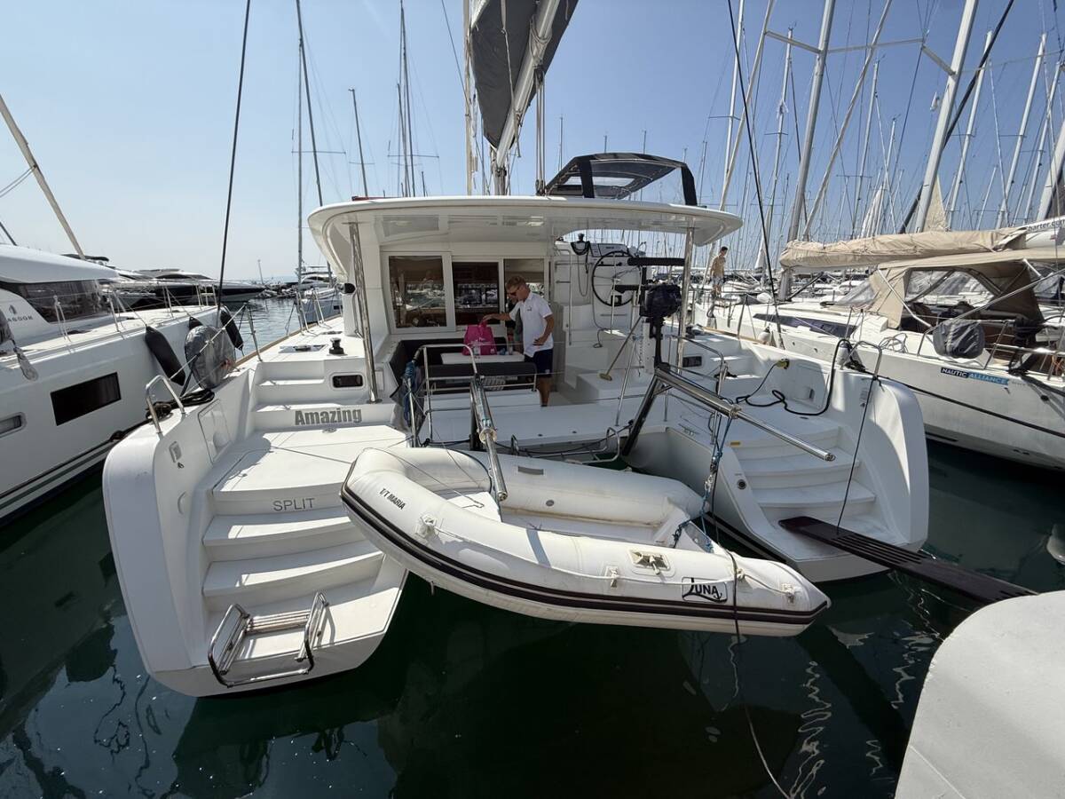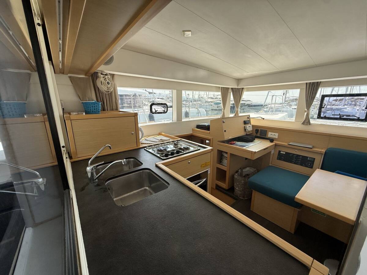 The Lagoon 39 „Amazing“ is equipped with a mainsail and a genoa as well as a Bimini top, Autopilot, Sprayhood.