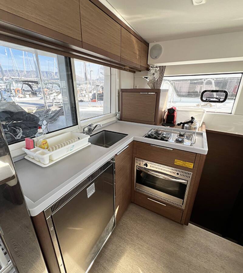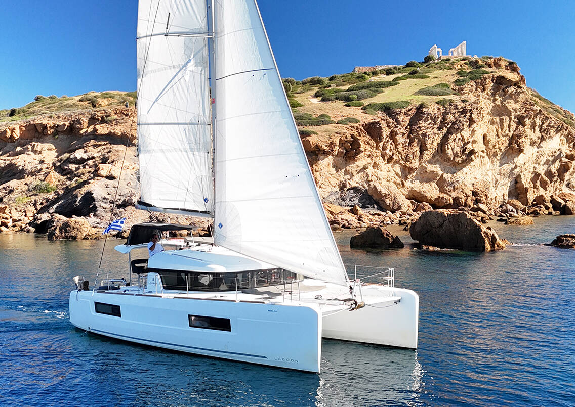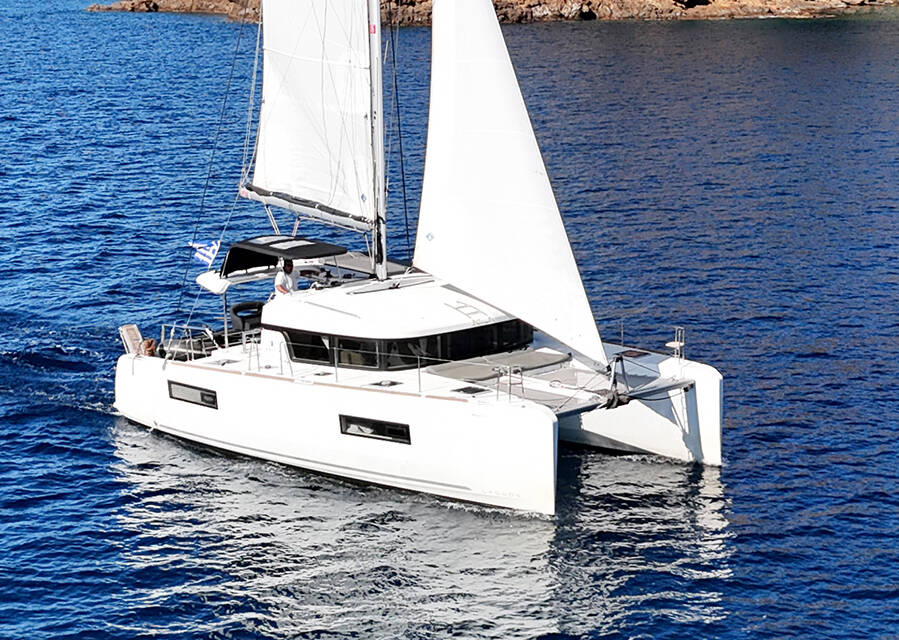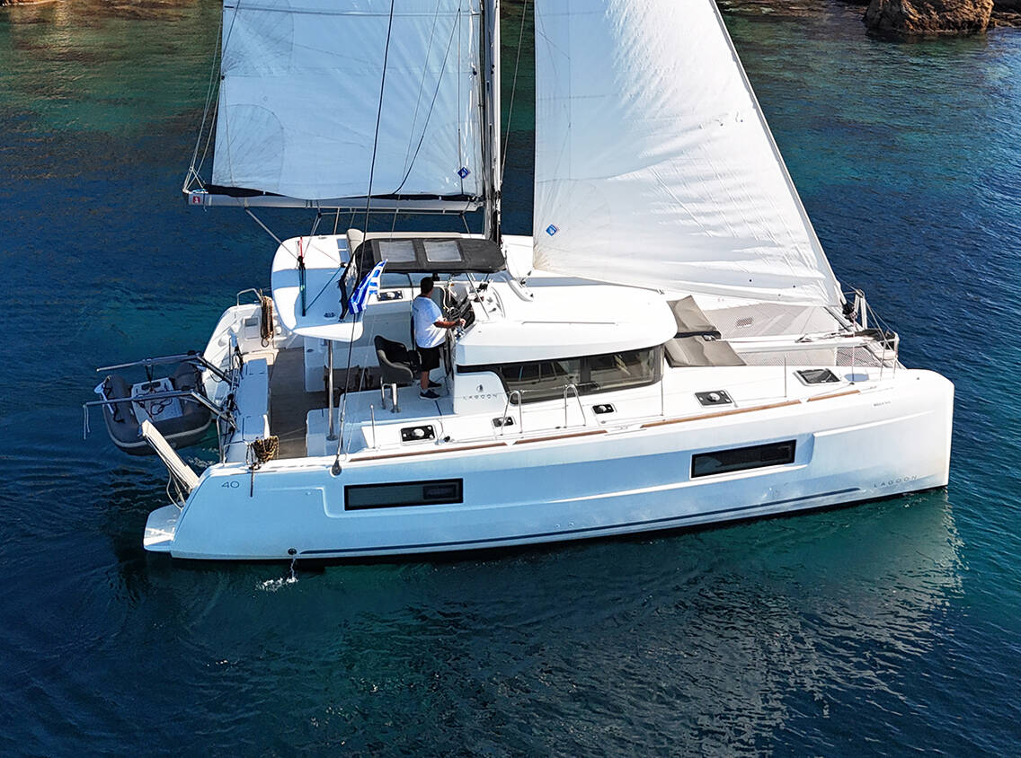 The Lagoon 40 „Bella Mare“ is equipped with a mainsail and a genoa as well as a Autopilot, Teak cockpit.