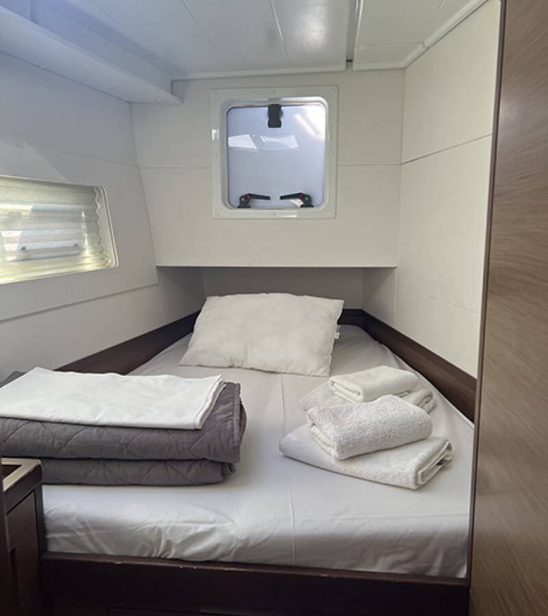 The Lagoon 40 „Bella Mare“ offers special comfort with the following equipment features: Generator, Air Conditioning, Freezer, Cockpit cushions, Inverter, Electric toilet, Solar panels.
