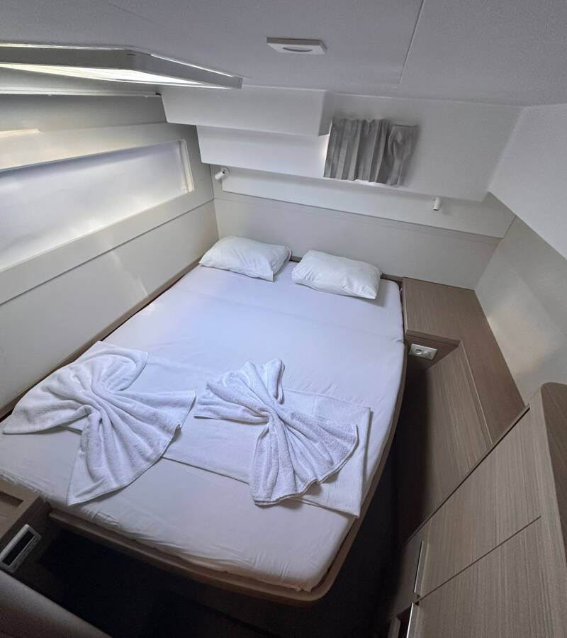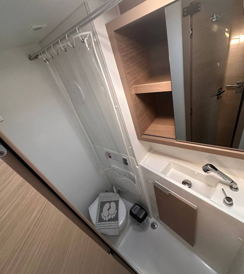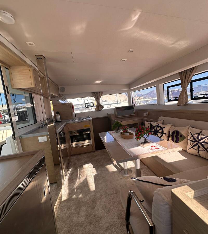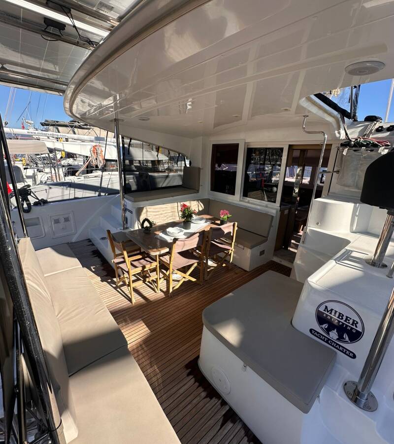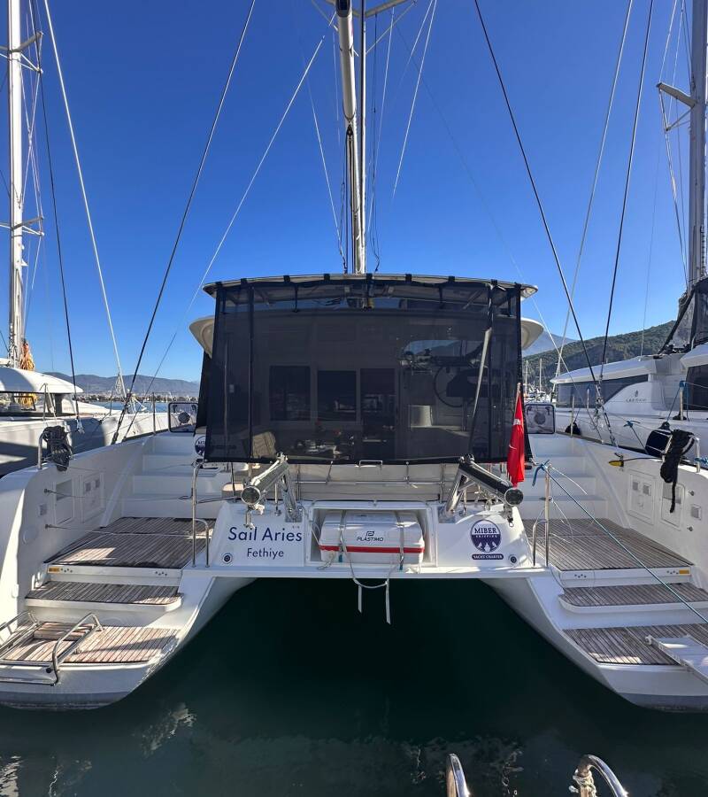 The Lagoon 40 „Miber Aries“ offers special comfort with the following equipment features: Generator, Air Conditioning, Freezer, Cockpit cushions, Electric toilet, Solar panels.