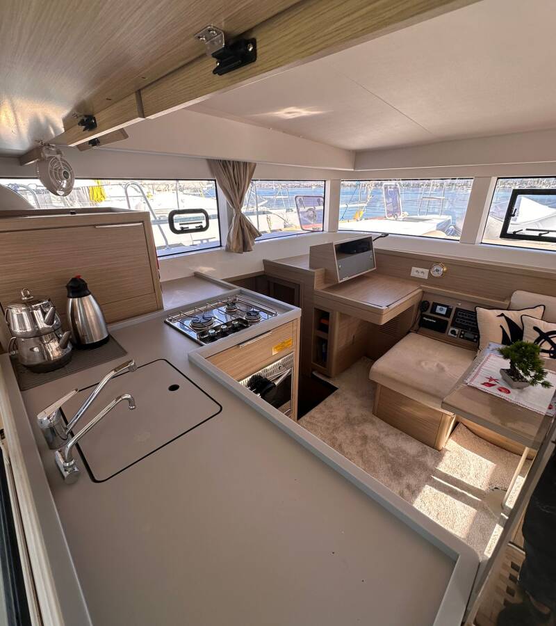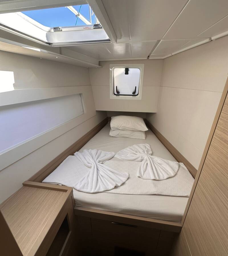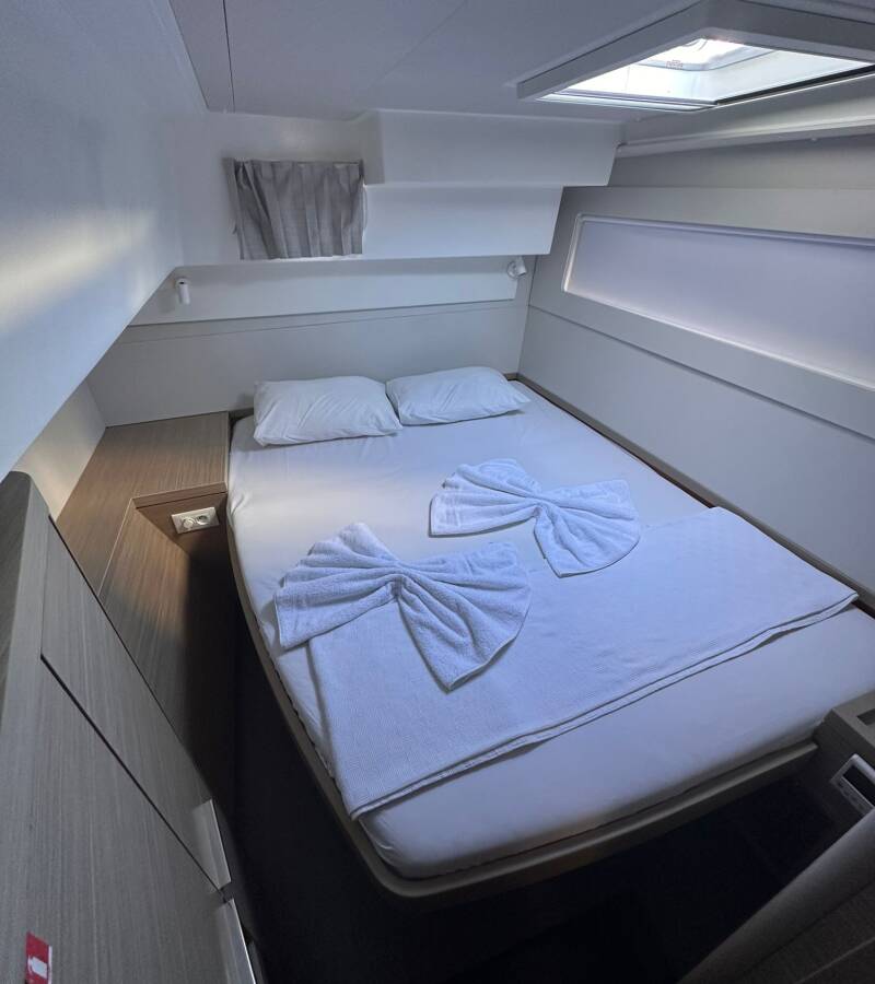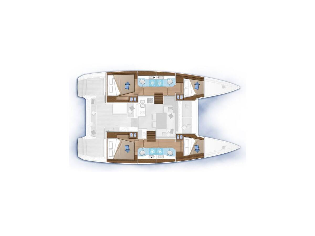 The Lagoon 40 „Miber Aries“ offers special comfort with the following equipment features: Generator, Air Conditioning, Freezer, Cockpit cushions, Electric toilet, Solar panels.