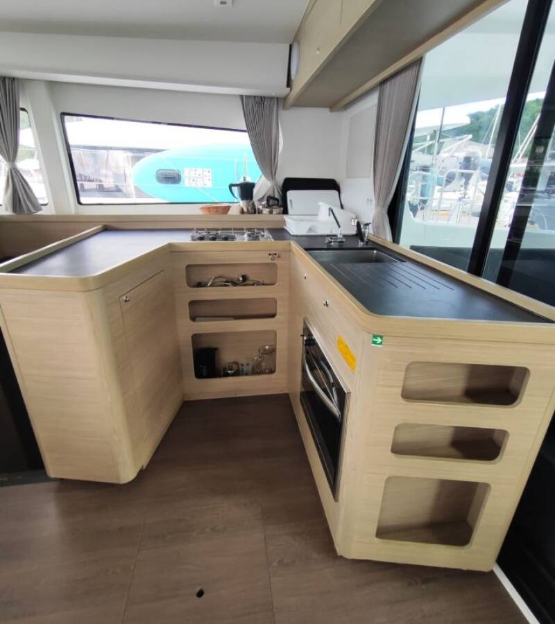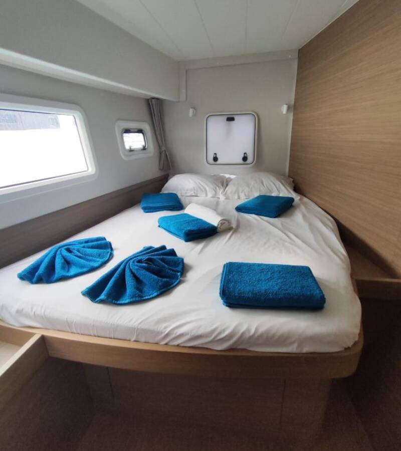 The Lagoon 42 „ANEMONE“ offers special comfort with the following equipment features: Generator, Air Conditioning, Cockpit cushions, Inverter, Electric toilet, Solar panels.