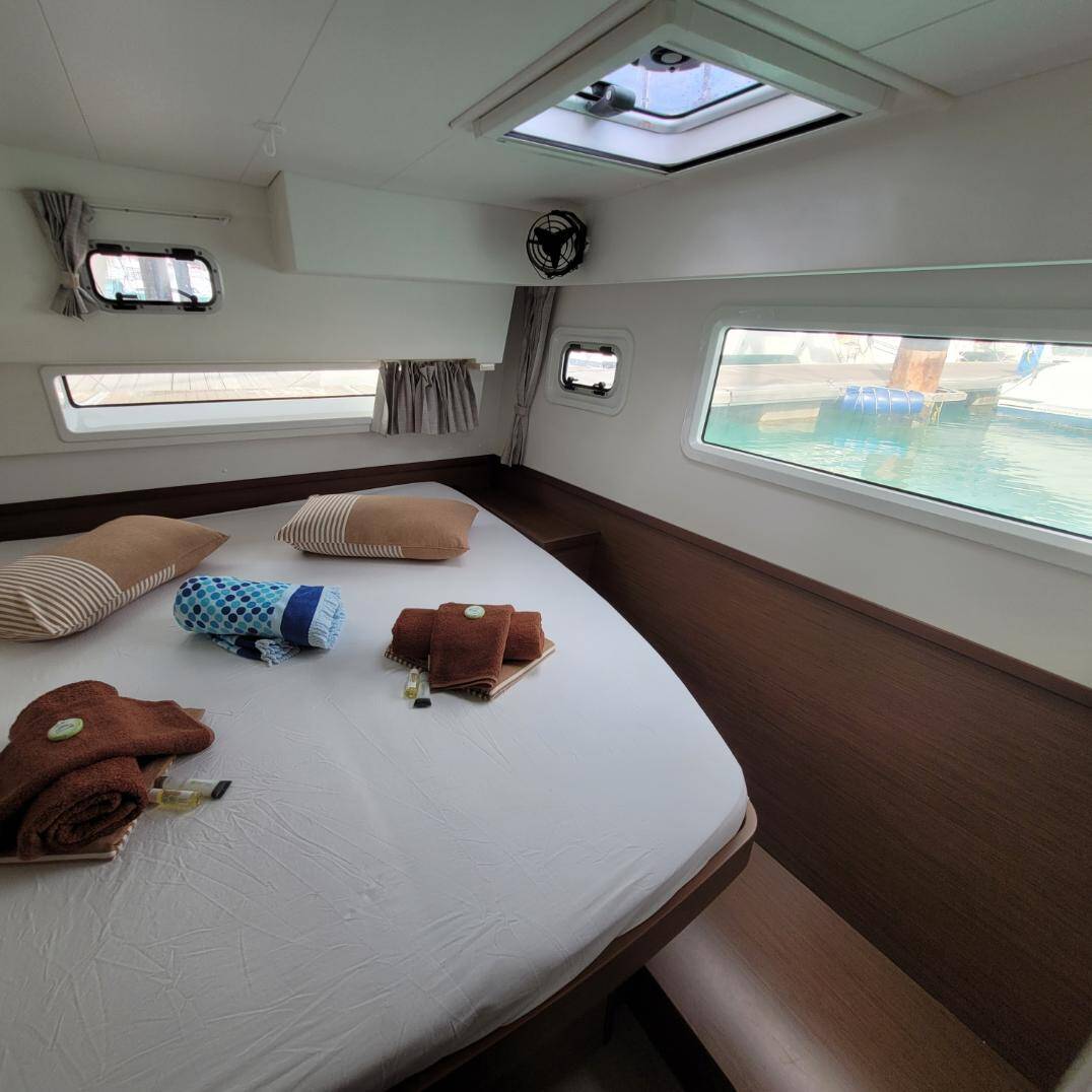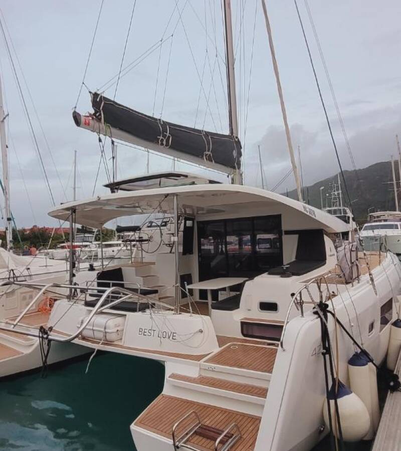 The Lagoon 42 „Best Love“ offers special comfort with the following equipment features: Air Conditioning, Cockpit cushions, Inverter, Electric toilet, Solar panels.