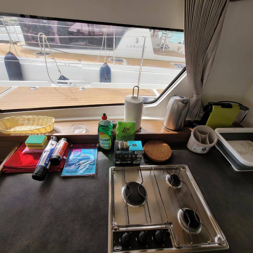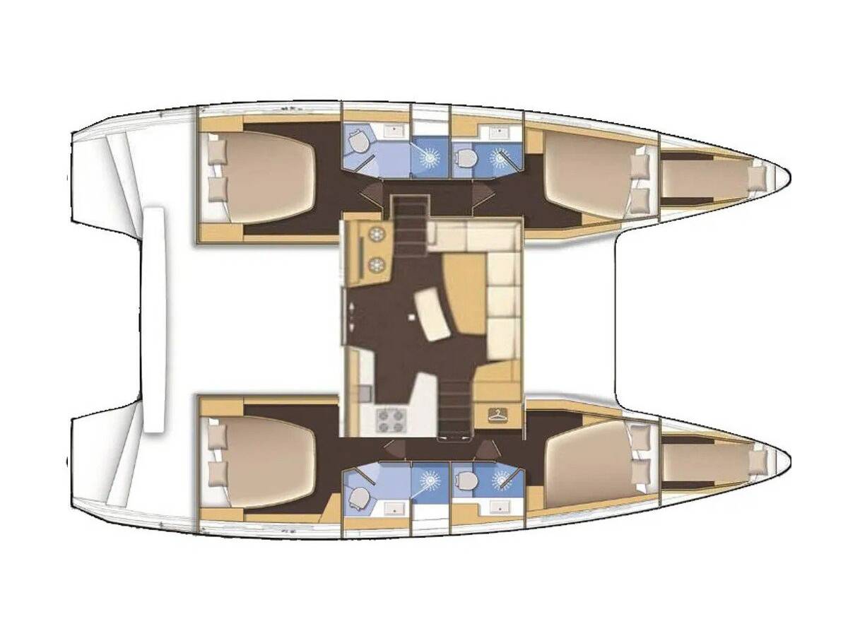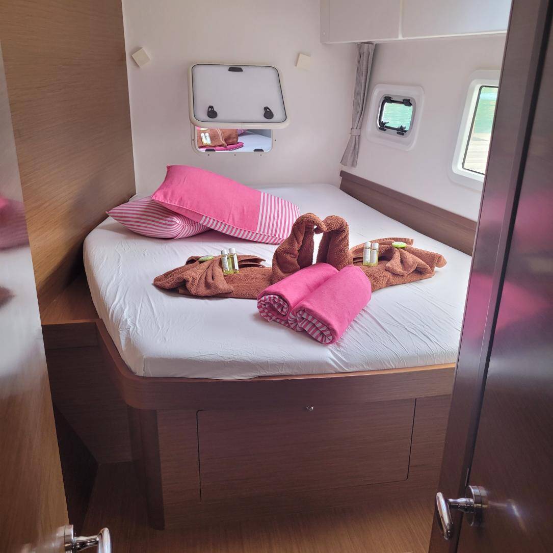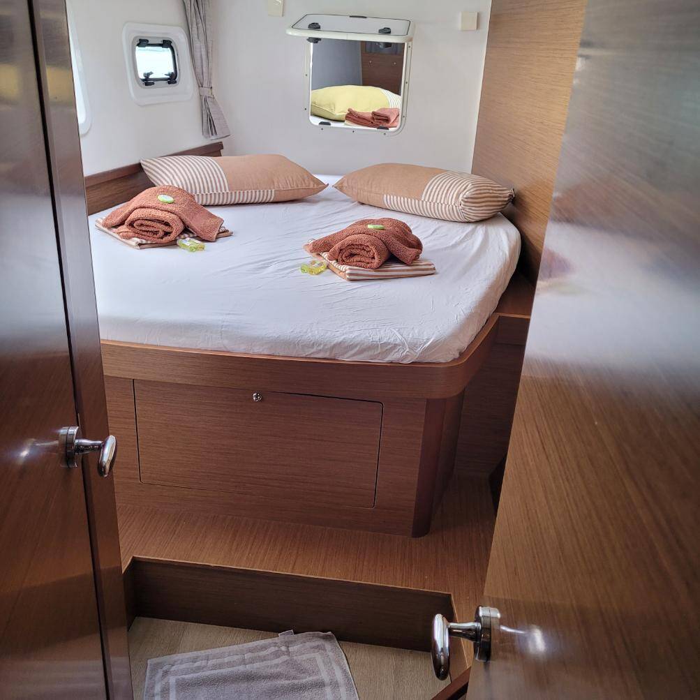 The Lagoon 42 „Best Q“ offers special comfort with the following equipment features: Air Conditioning, Cockpit cushions, Inverter, Electric toilet, Solar panels.