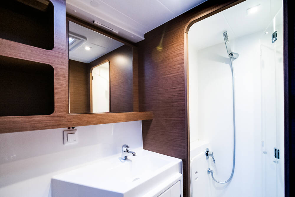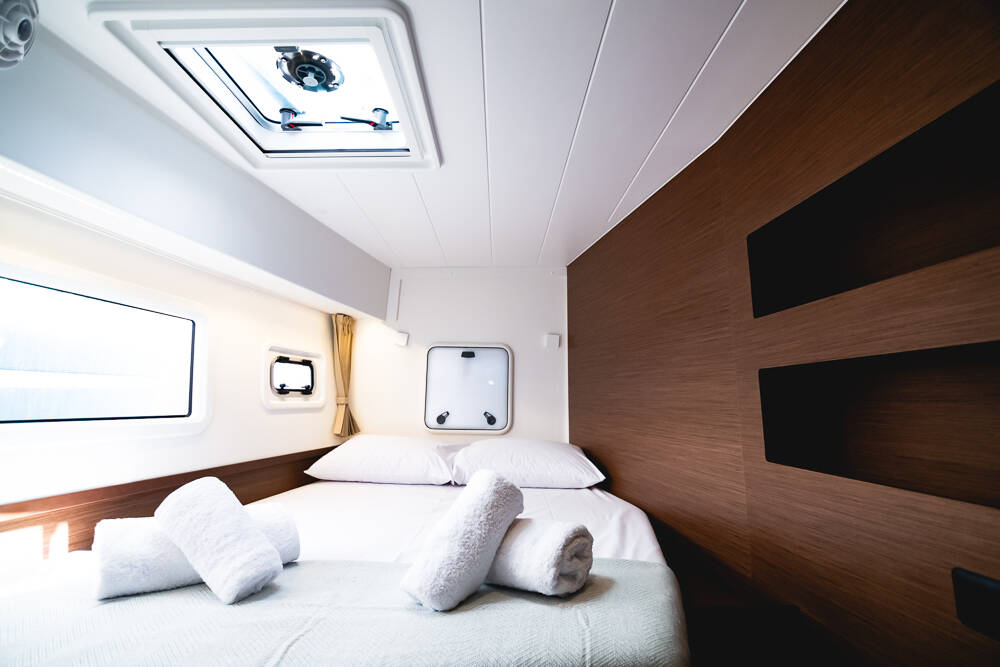 The Lagoon 42 „Blue Trident“ offers special comfort with the following equipment features: Generator, Air Conditioning, Cockpit cushions, Electric toilet.