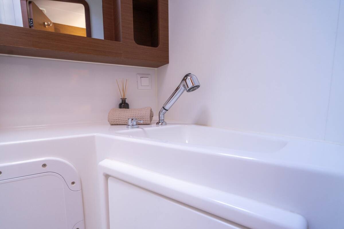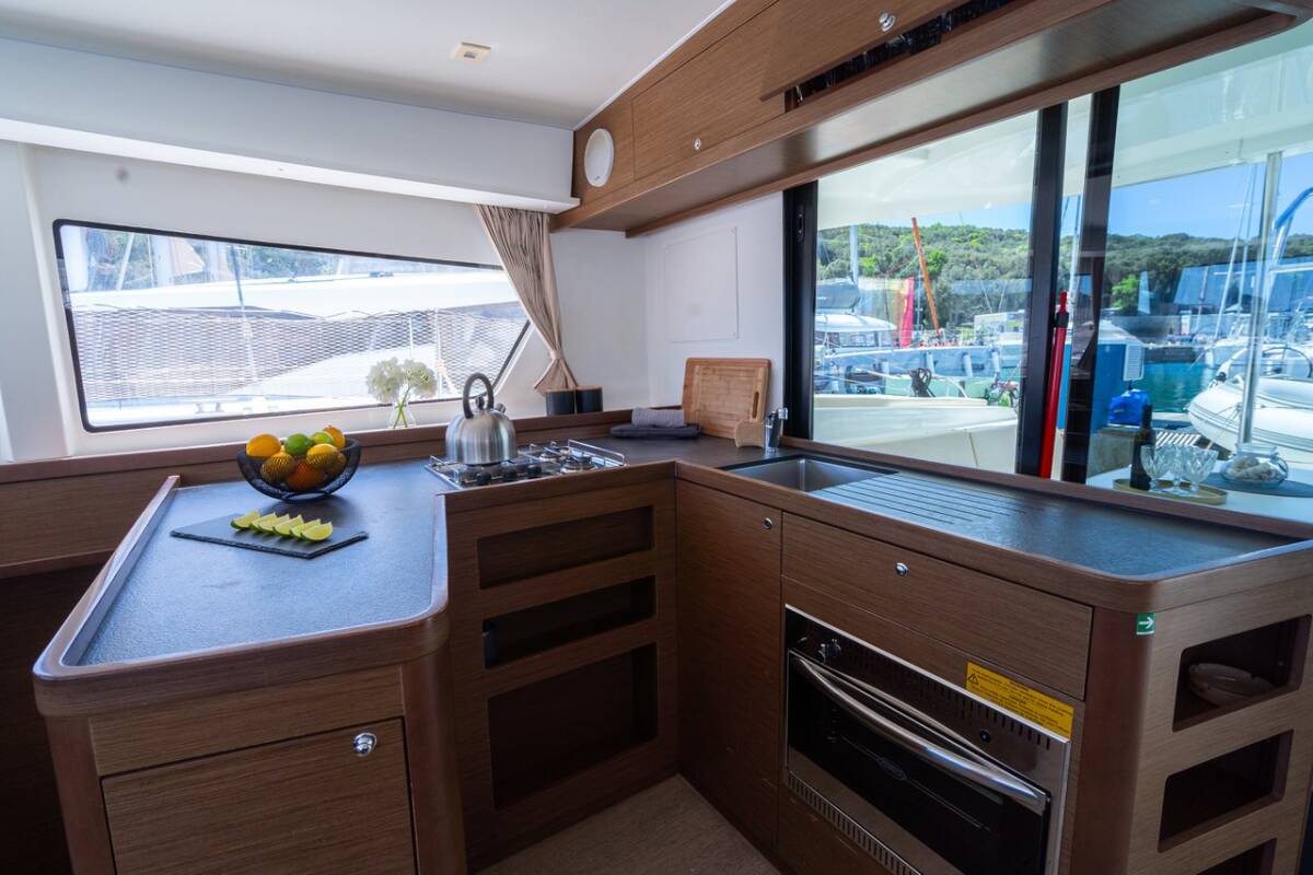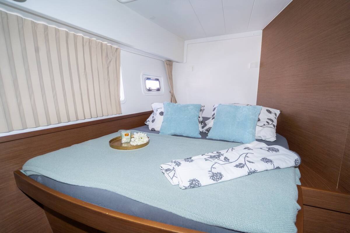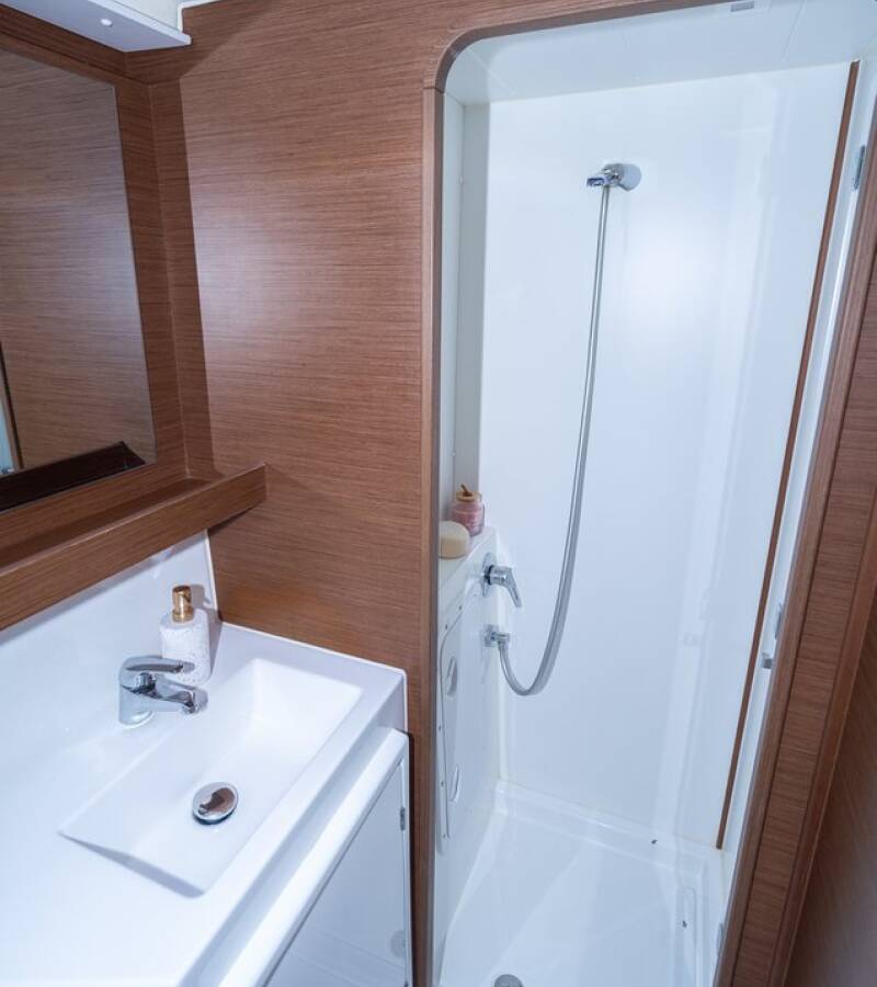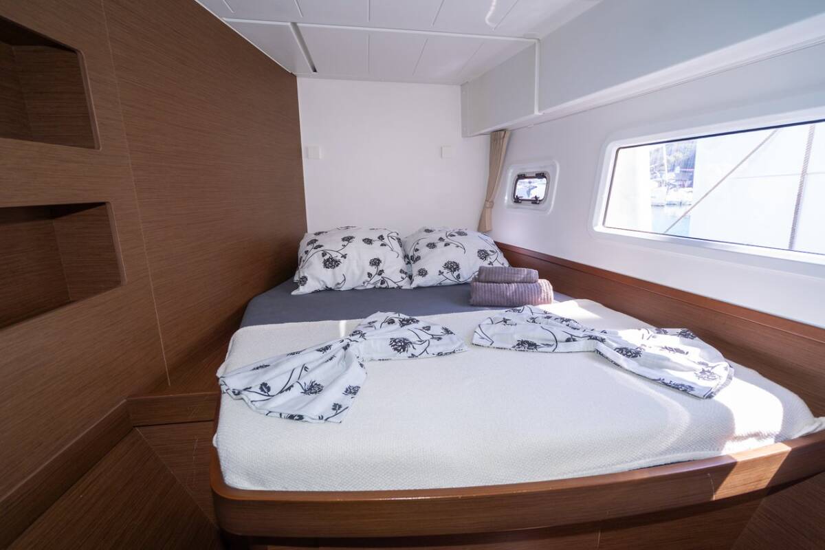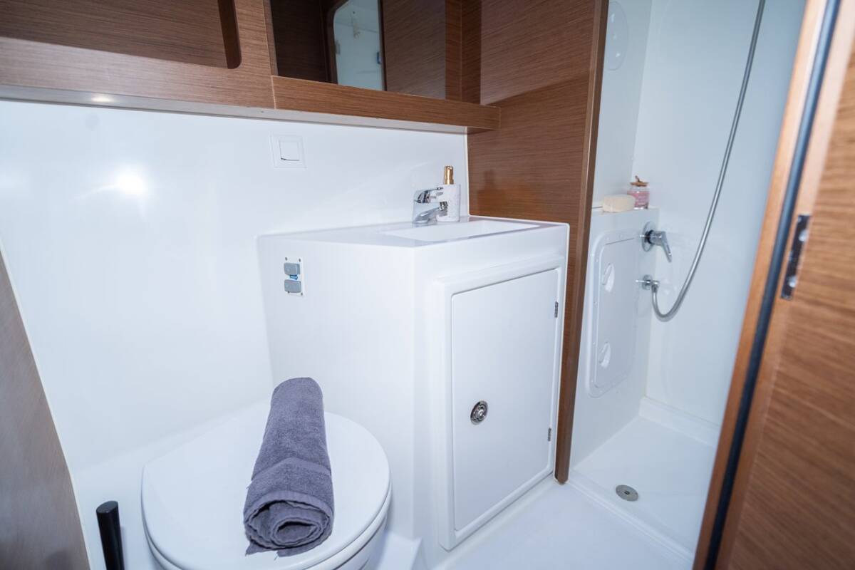 The Lagoon 42 „Fleur de Sel“ offers special comfort with the following equipment features: Cockpit cushions, Bathing platform, Inverter, Solar panels.