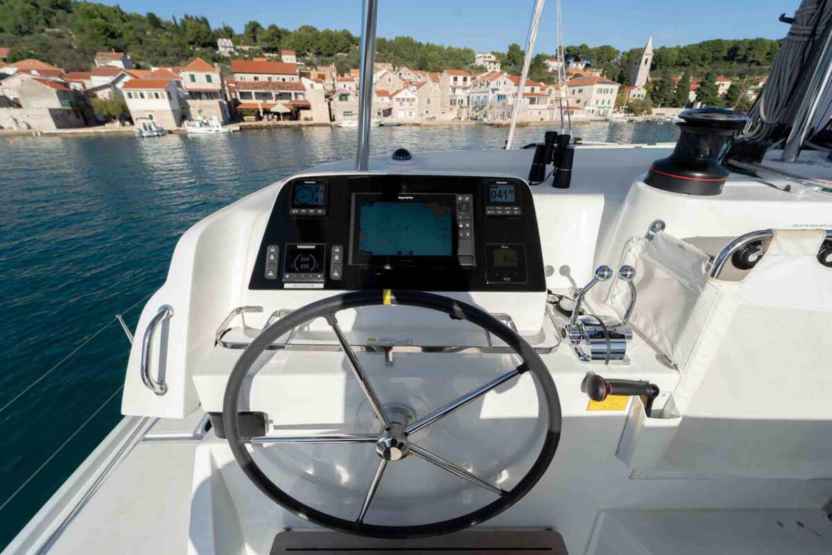 The Lagoon 42 „Mare Sunce“ is equipped with a mainsail and a genoa as well as a Bimini top, Autopilot, Heating, Teak cockpit, GPS chart plotter - cockpit.
