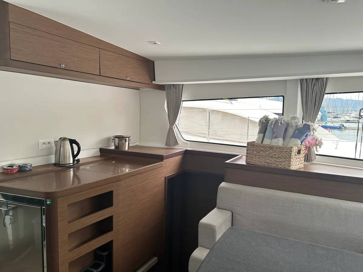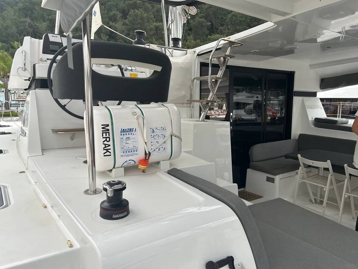 The Lagoon 42 „Meraki“ offers special comfort with the following equipment features: Generator, Air Conditioning, Freezer, Inverter, Electric toilet.