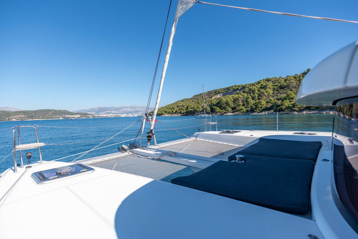 The Lagoon 42 OW „Find Us“ is equipped with a mainsail and a genoa as well as a Bimini top, Autopilot, Sprayhood, Heating, Teak cockpit.