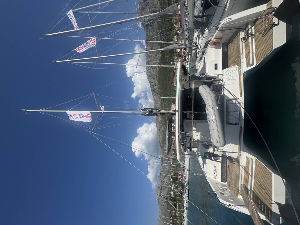 The Catamaran Lagoon 42 „Sea novels“, built in 2020, is moored in Palairos - Greece. The yacht has 4 + 2 cabins, can accomodate 8 + 2 + 2 persons and has 4 toilets/showers.