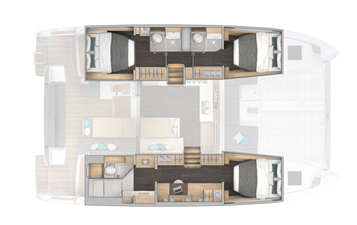 The Lagoon 43 „Aloha“ offers special comfort with the following equipment features: Generator, Air Conditioning, Freezer, Electric toilet.