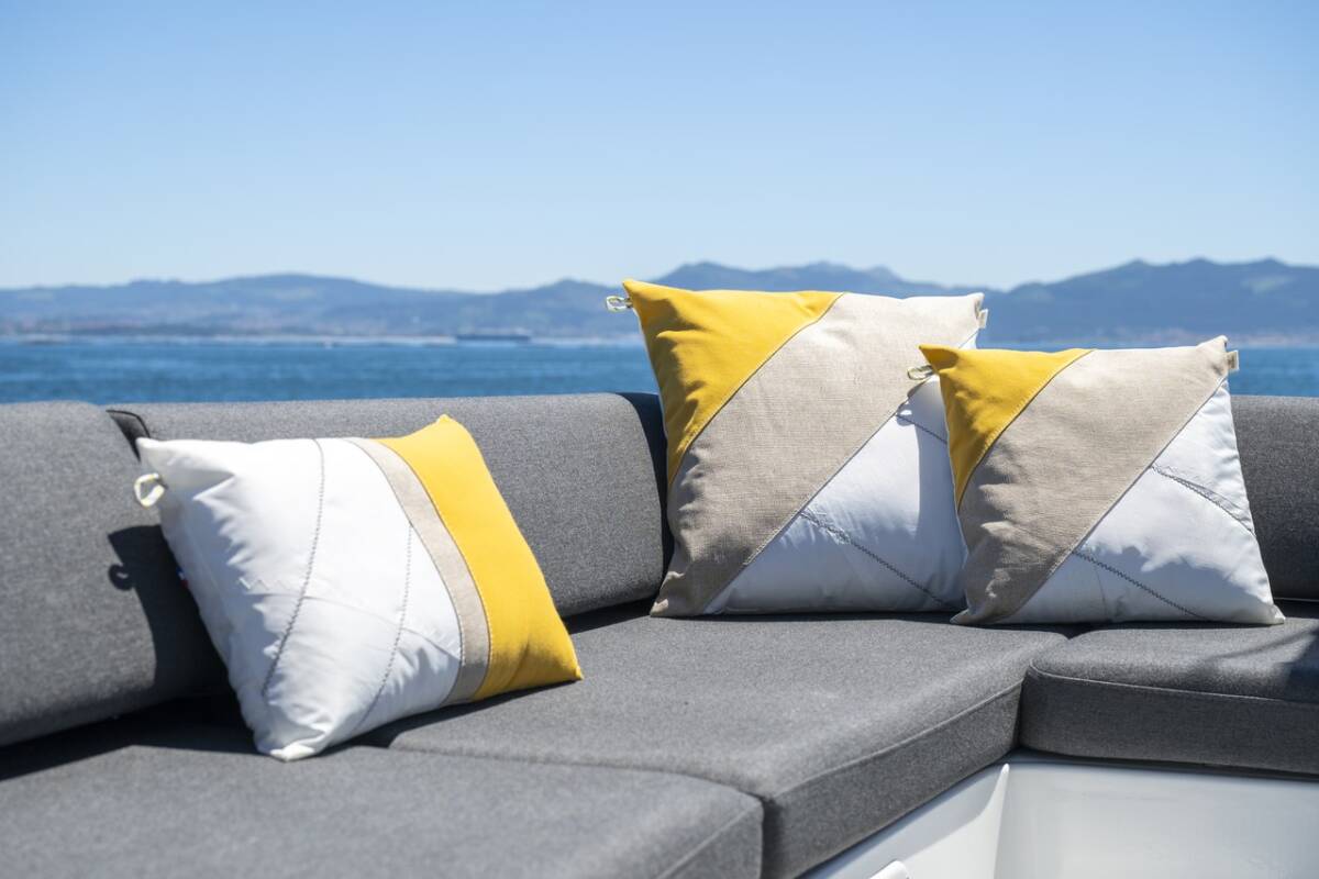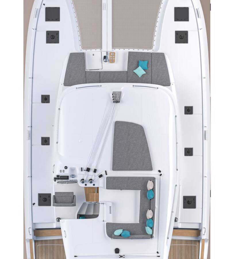 The Lagoon 43 „Bunga Bunga“ is equipped with a mainsail and a genoa as well as a Bimini top, Autopilot, Heating, Teak cockpit.