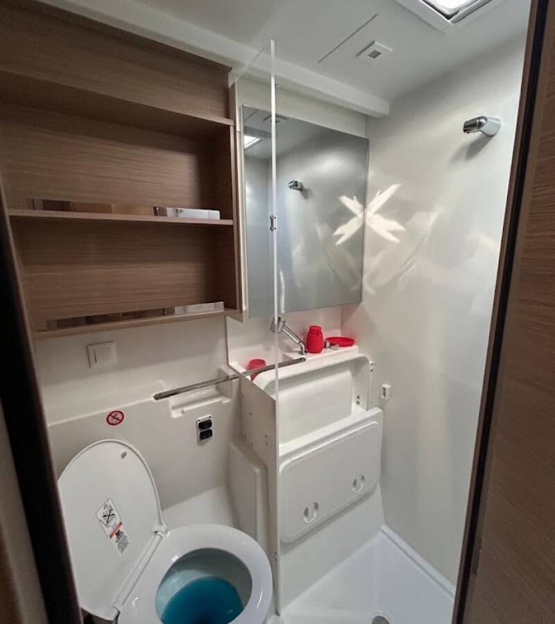 The Lagoon 43 „Zen 2“ offers special comfort with the following equipment features: Generator, Air Conditioning, Freezer, Cockpit cushions, Inverter, Electric toilet.