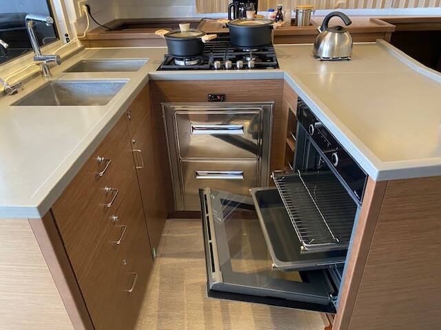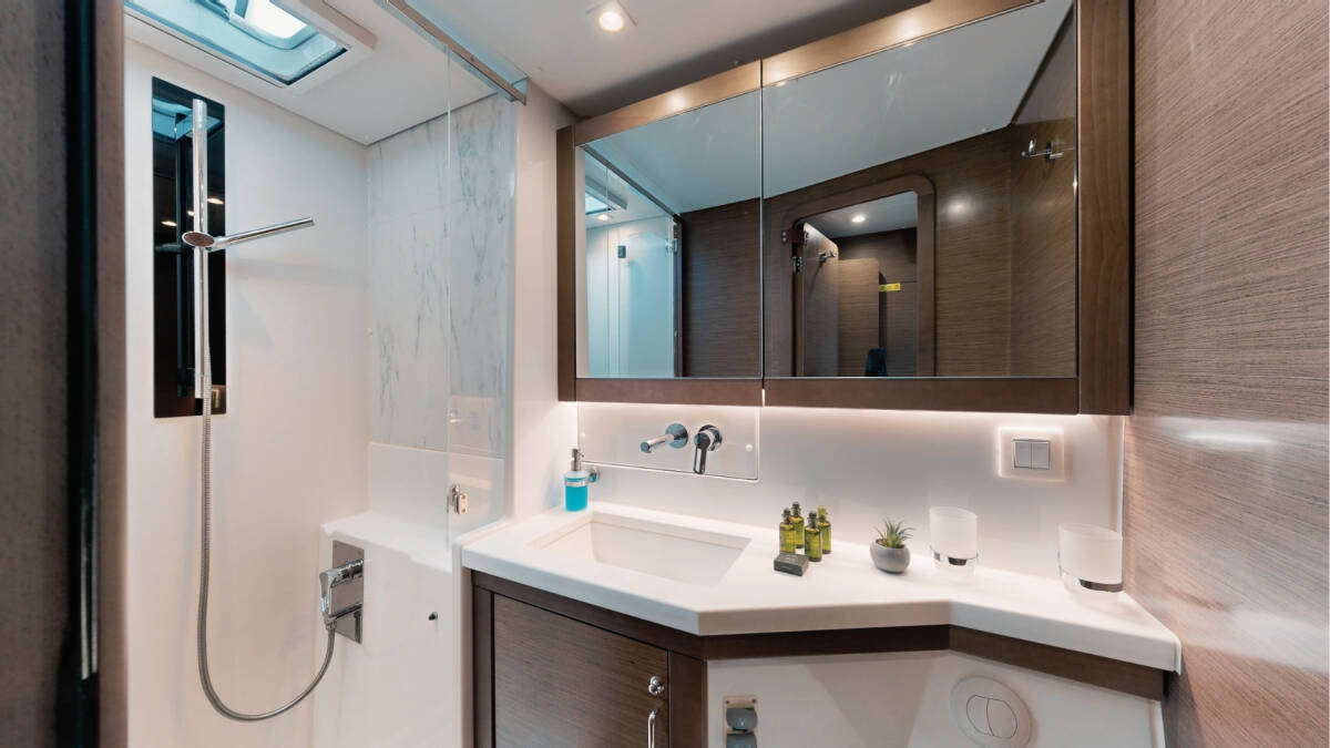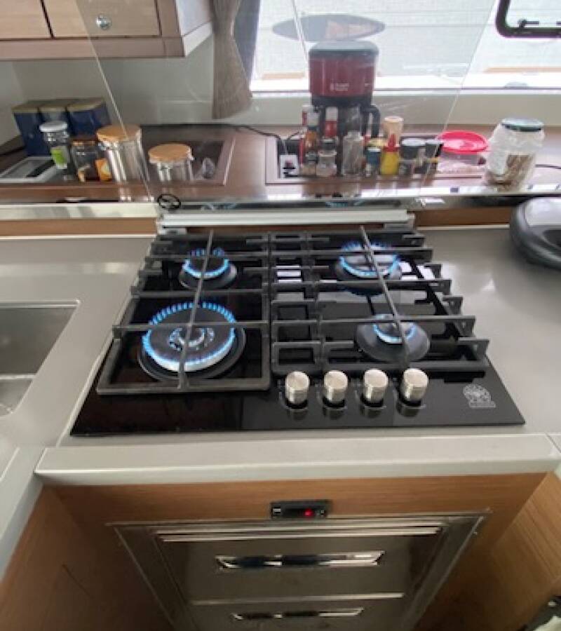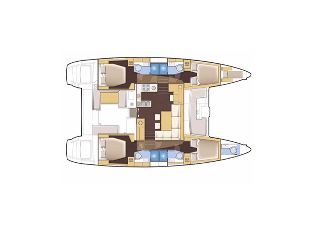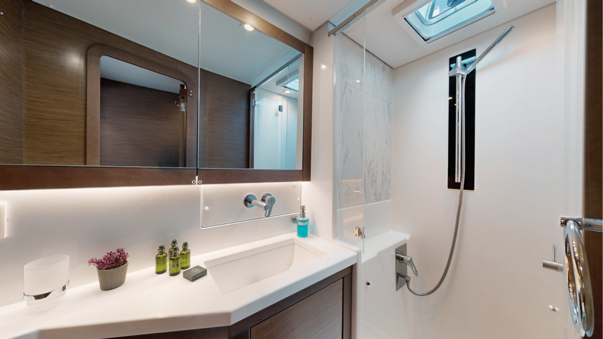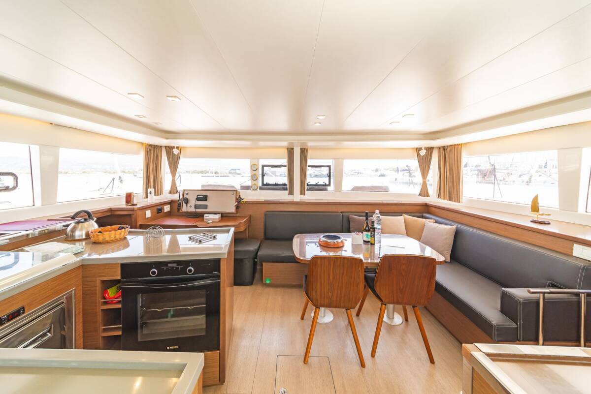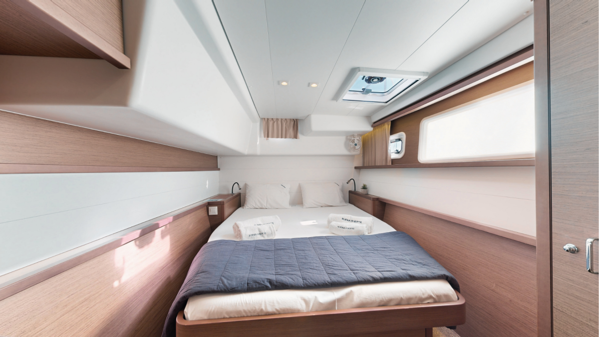 The Lagoon 450 F „Buena Suerte“ offers special comfort with the following equipment features: Bow thruster, Generator, Air Conditioning, Inverter, Electric toilet, Solar panels.