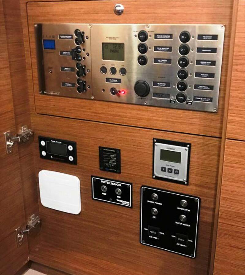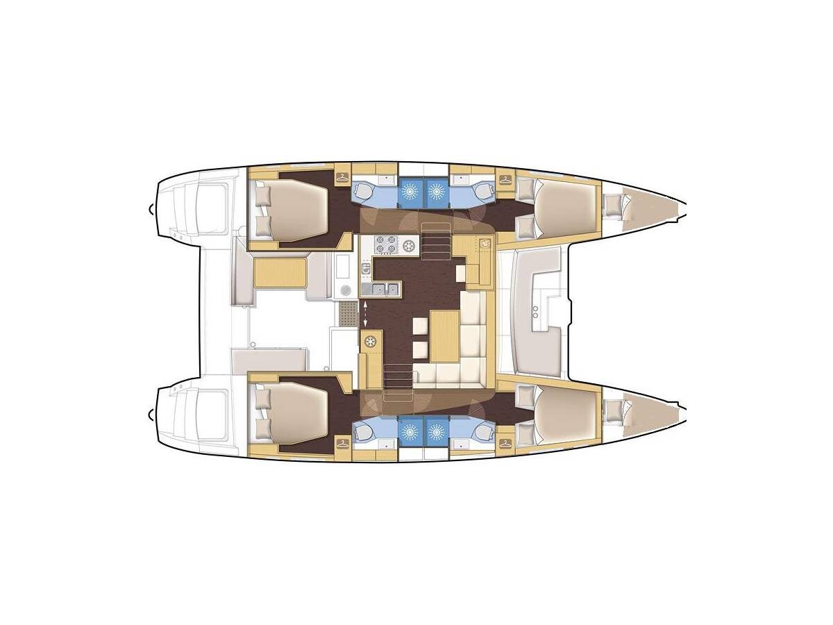The Lagoon 450 F „Golden Dream“ offers special comfort with the following equipment features: Generator, Air Conditioning, Inverter, Electric toilet, Solar panels.