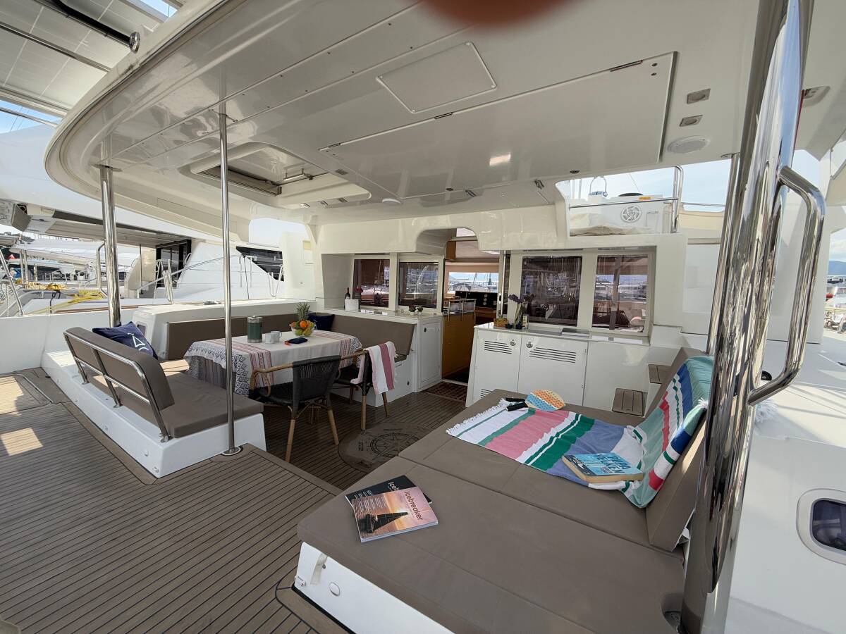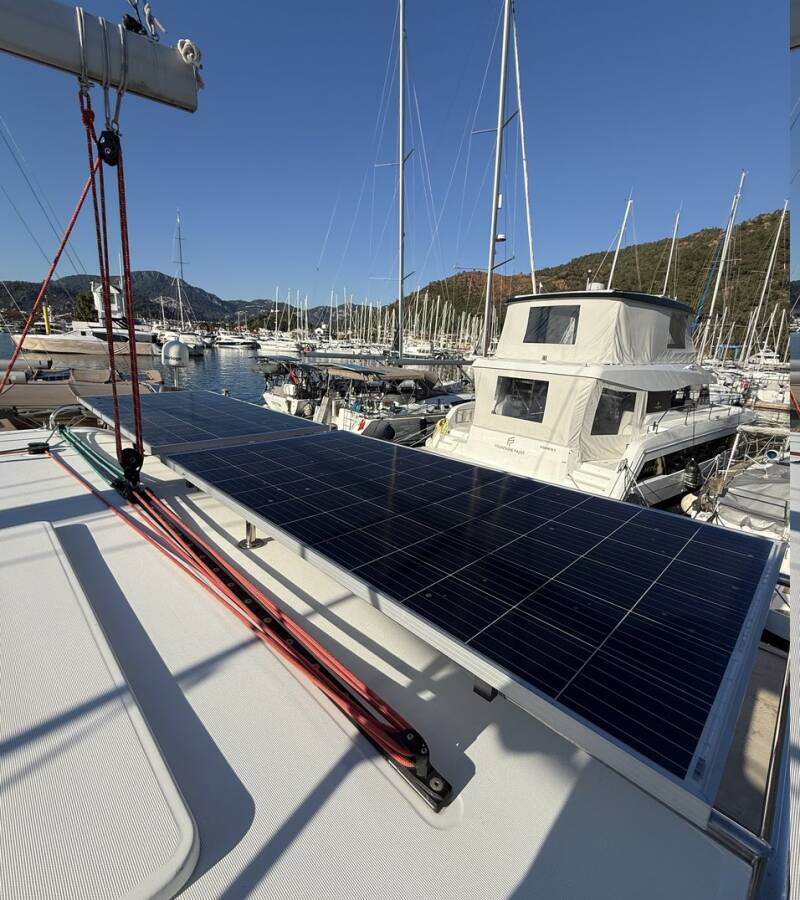 The Lagoon 450 F „Lu Lu“ offers special comfort with the following equipment features: Generator, Air Conditioning, Freezer, Cockpit cushions, Bathing platform, Inverter, Solar panels.