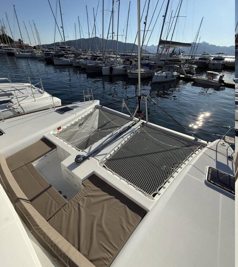 The Catamaran Lagoon 450 F „Lu Lu“, built in 2015, is moored in Marmaris, Albatros Marina - Turkey. The yacht has 4 + 2 cabins, can accomodate 8 + 2 persons and has 4 toilets/showers.
