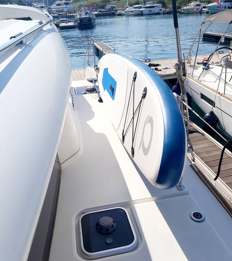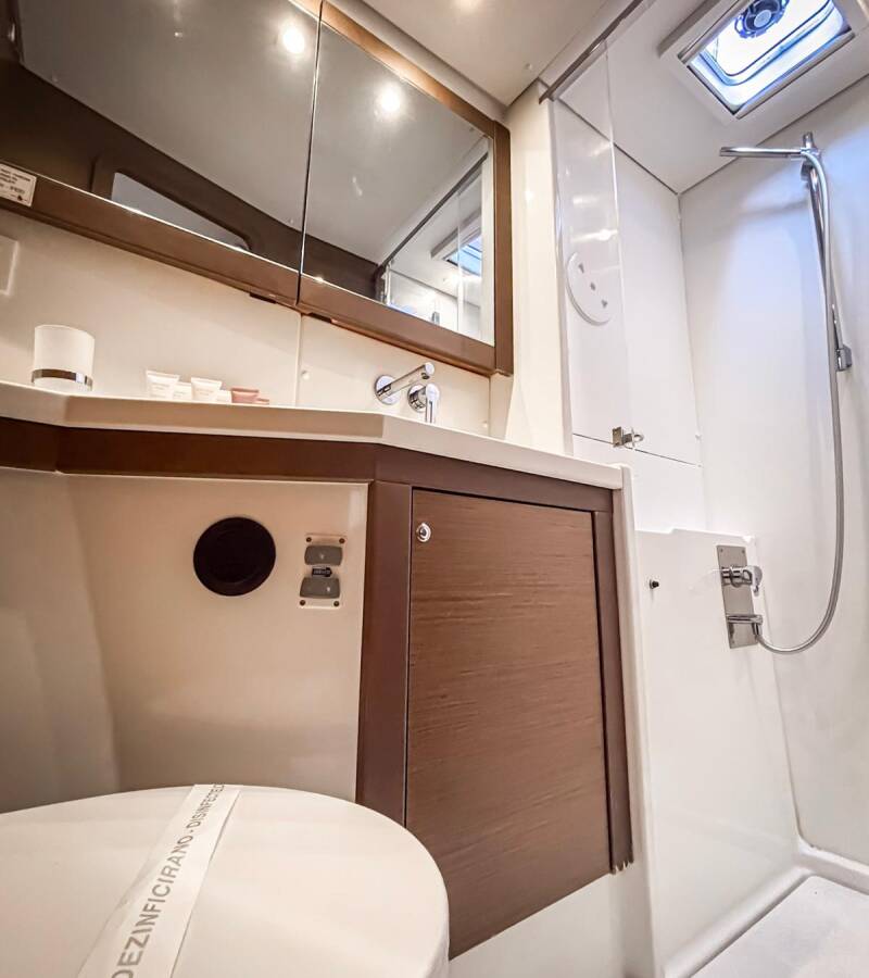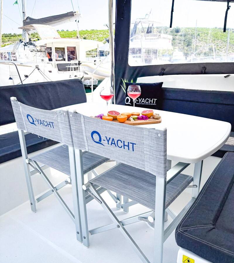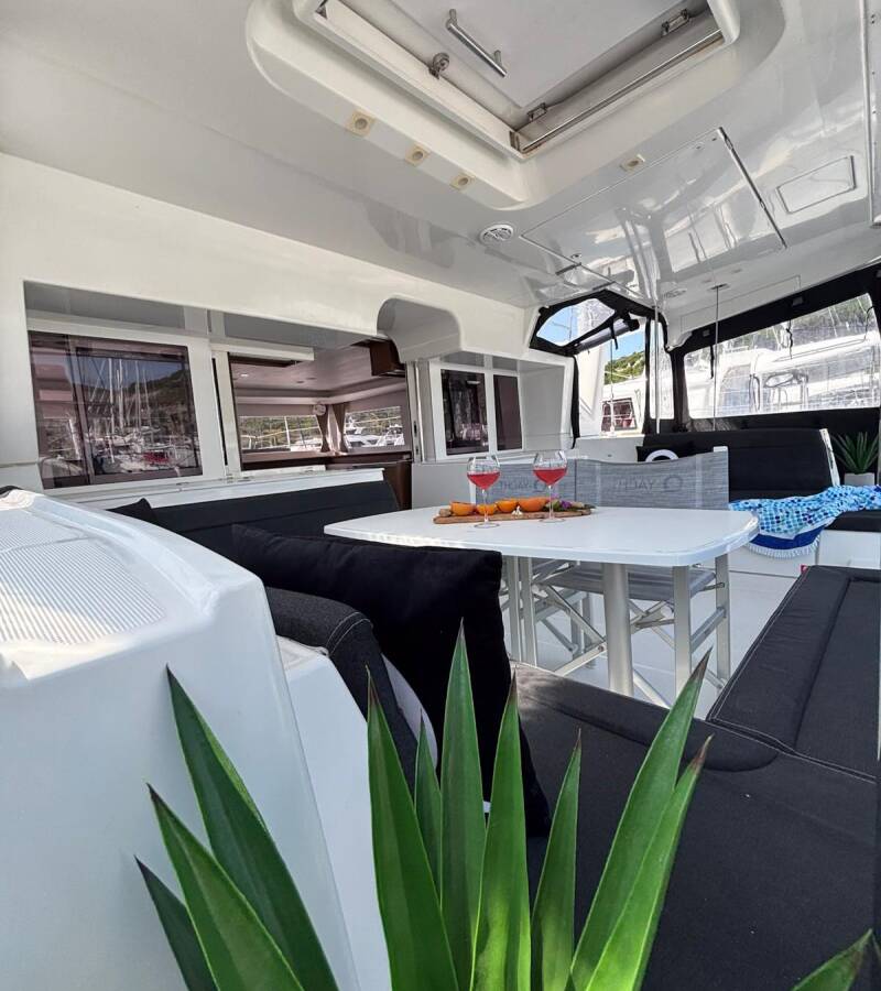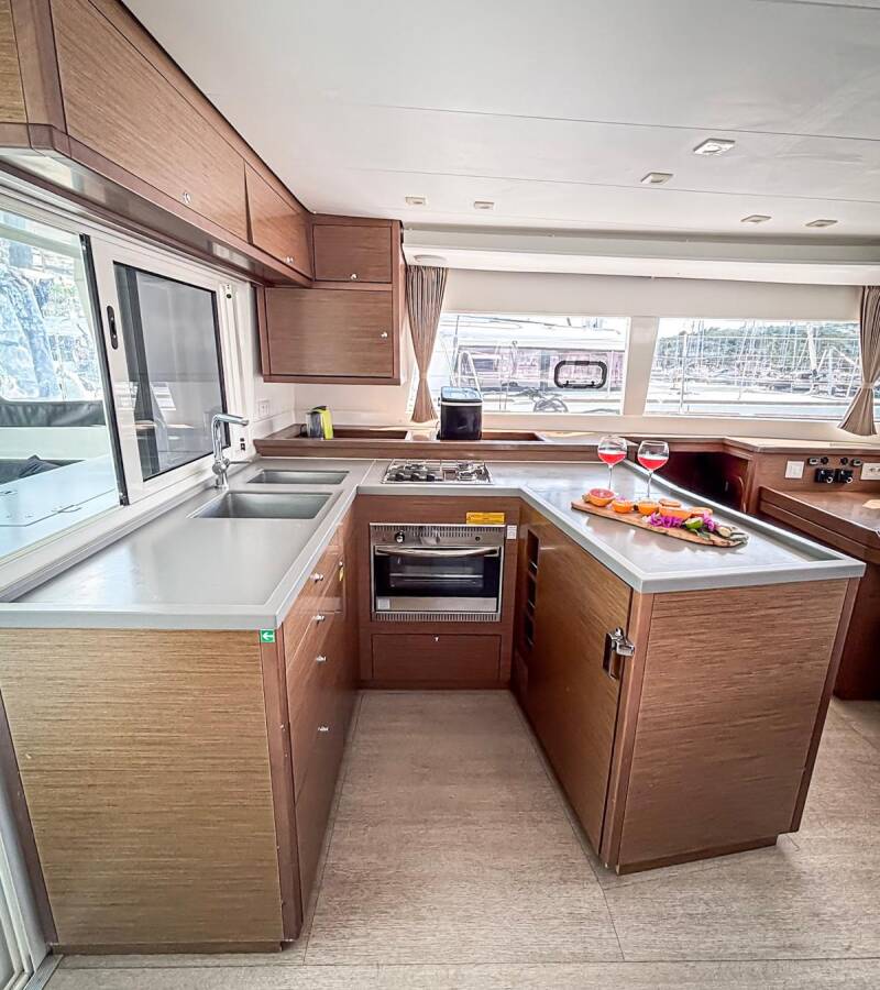 The Catamaran Lagoon 450 F „Red Twin II“, built in 2019, is moored in Marina Kremik, Primosten - Croatia. The yacht has 4 + 2 cabins, can accomodate 8 + 2 + 2 persons and has 4 toilets/showers.