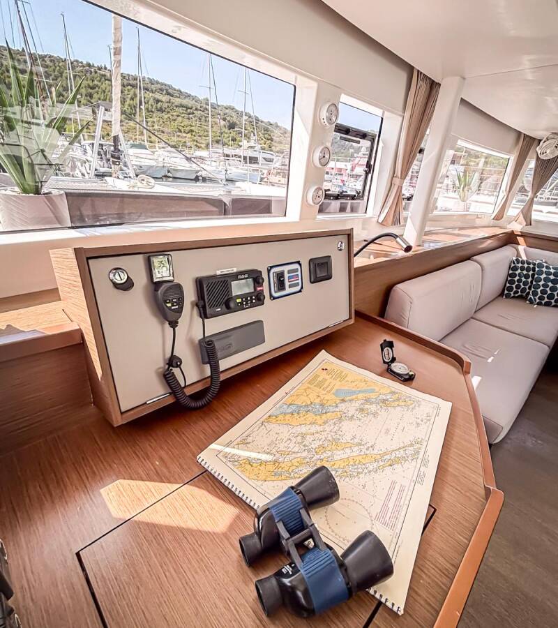 The Lagoon 450 F „Red Twin II“ offers special comfort with the following equipment features: Generator, Air Conditioning, Electric toilet.