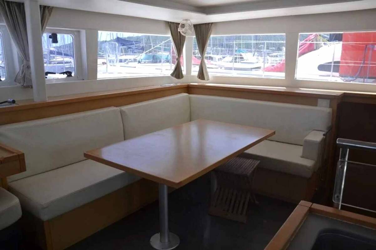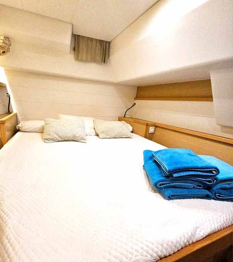 The Lagoon 450 S „Oryx“ is equipped with a mainsail and a genoa as well as a Bimini top, Autopilot, Heating, Teak cockpit, GPS chart plotter - cockpit.