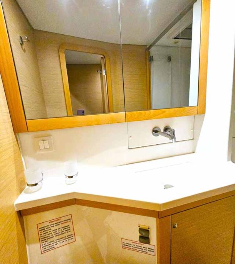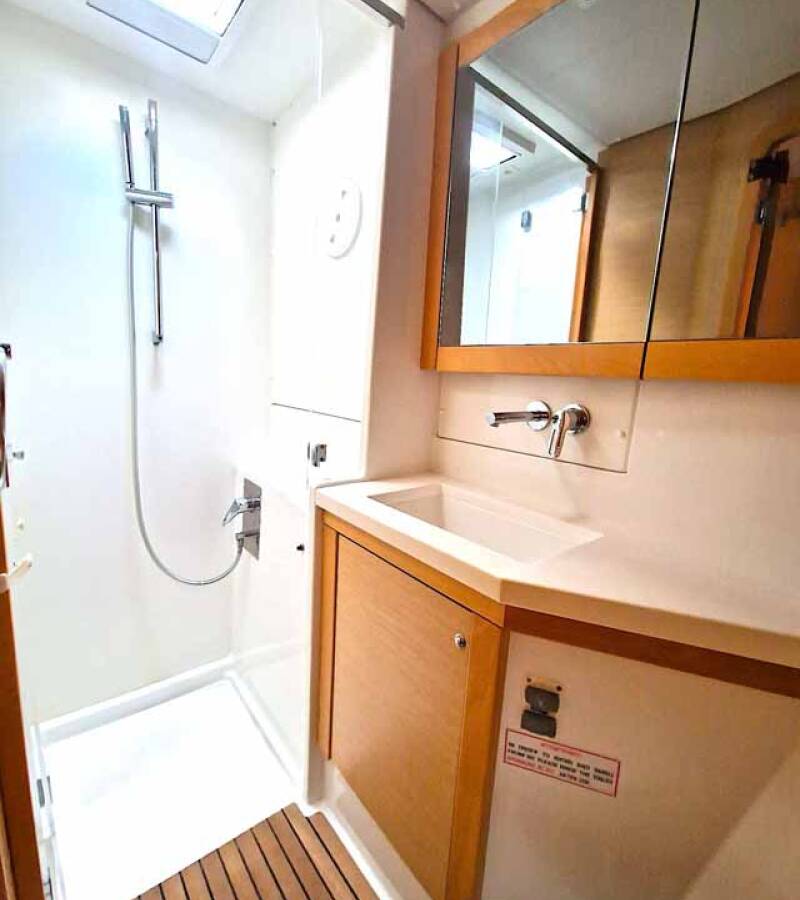 The Lagoon 450 S „Oryx“ offers special comfort with the following equipment features: Cockpit cushions, Bathing platform, Inverter, Electric toilet, Solar panels.