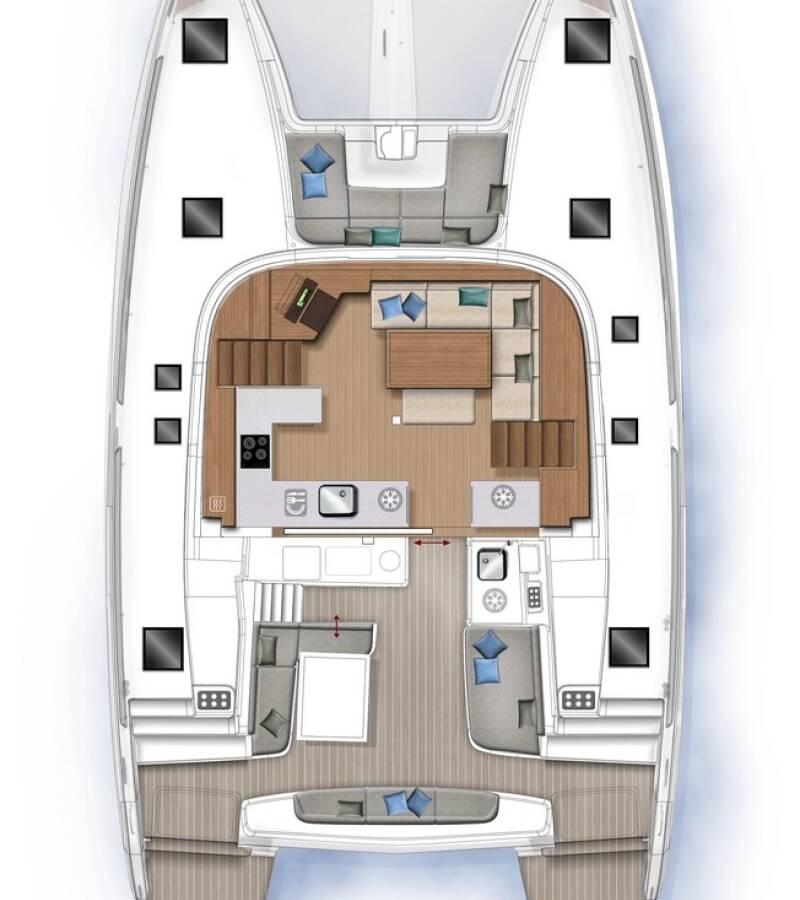 The Lagoon 46 „Back to the Future“ offers special comfort with the following equipment features: Generator, Air Conditioning.