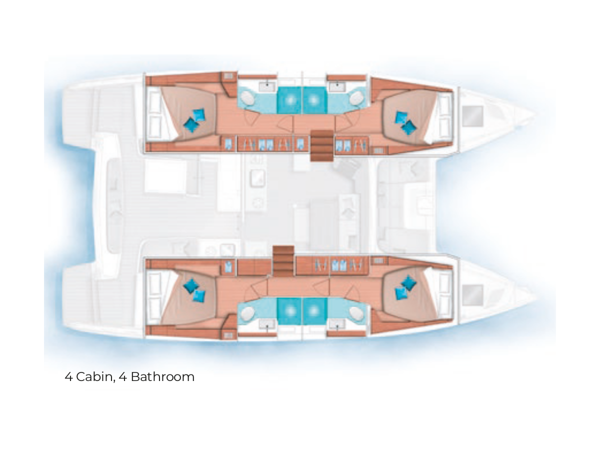 The Lagoon 46 „Blue Dream 48“ offers special comfort with the following equipment features: Generator, Air Conditioning, Electric toilet.