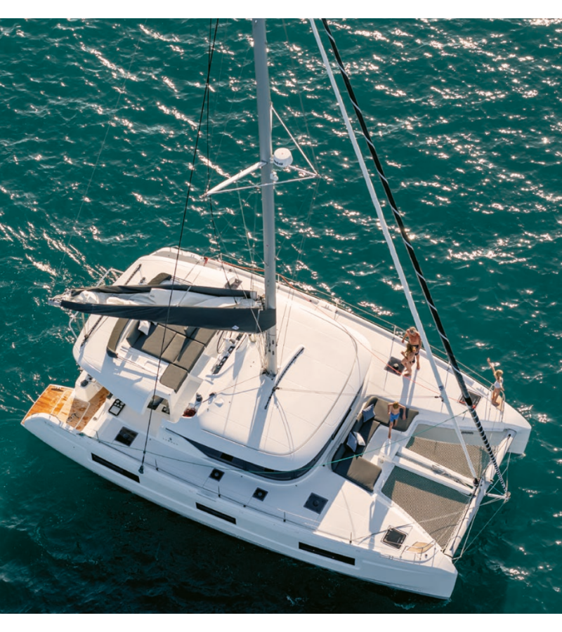 The Lagoon 46 „Blue Dream 48“ is equipped with a mainsail and a genoa as well as a Bimini top, Autopilot, Heating.