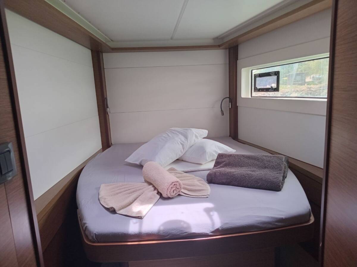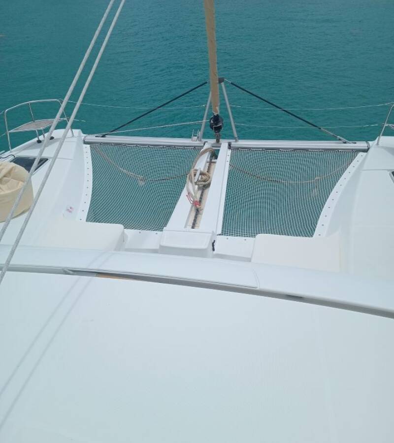 The Lagoon 46 „FRANCOIS-MAHE 2“ is equipped with a mainsail and a genoa as well as a Bimini top, Autopilot.