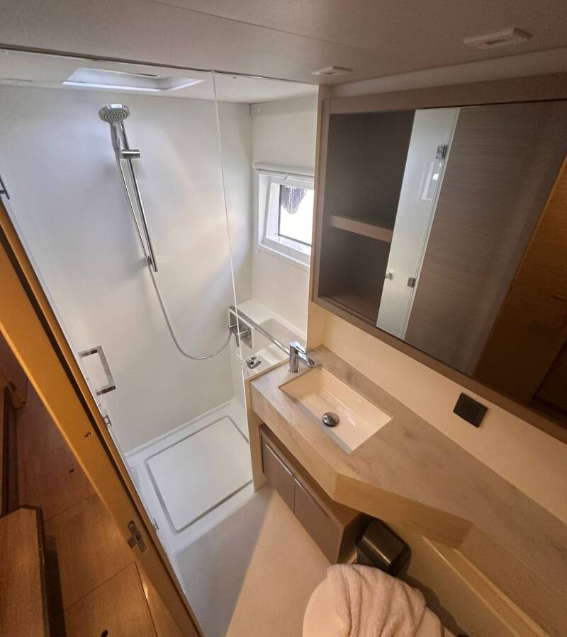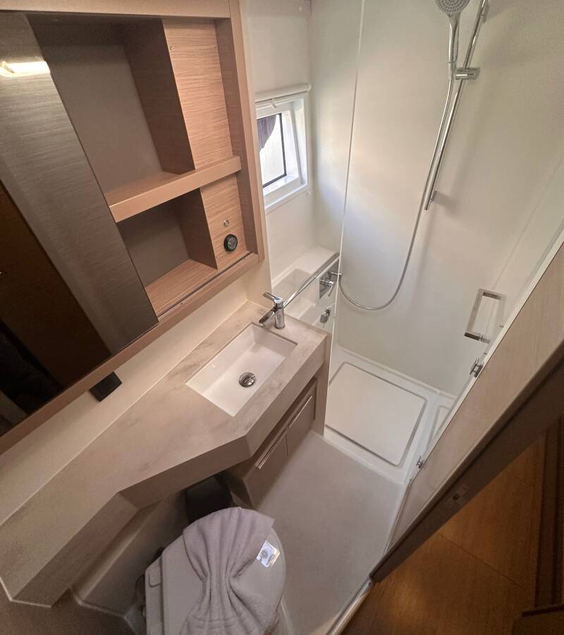 The Lagoon 46 „Miber Andromeda“ offers special comfort with the following equipment features: Generator, Freezer, Cockpit cushions, Electric toilet, Solar panels.