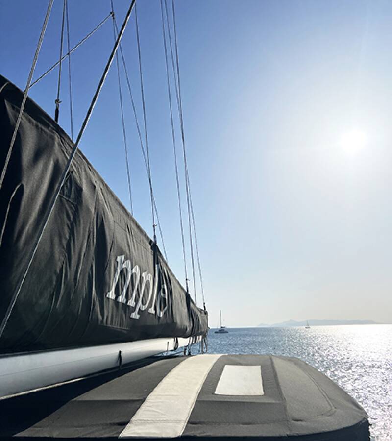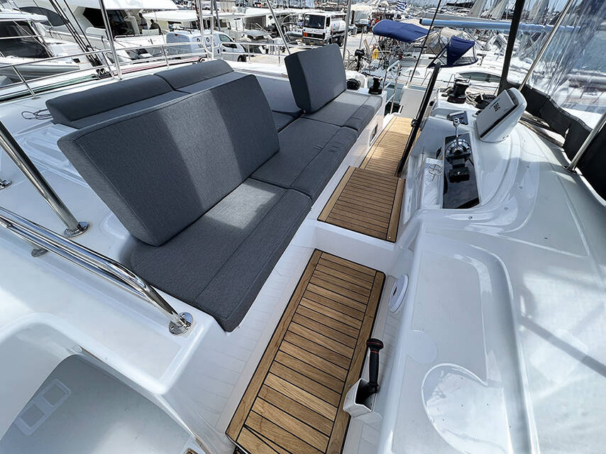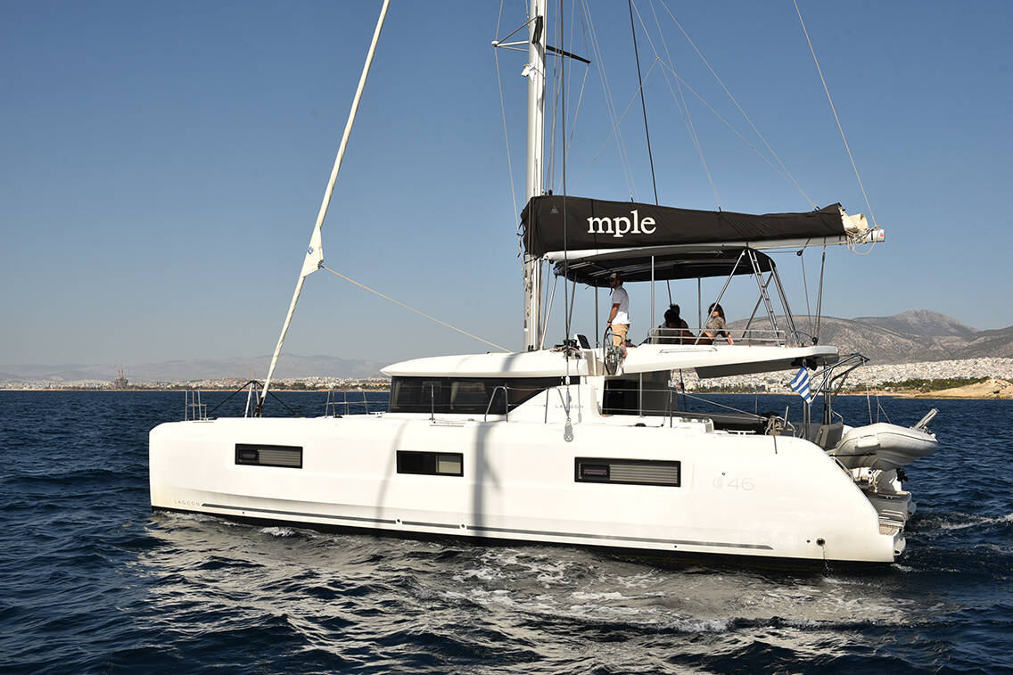 The Lagoon 46 „Mple“ is equipped with a mainsail and a genoa as well as a Bimini top, Autopilot, Sprayhood, Teak cockpit.