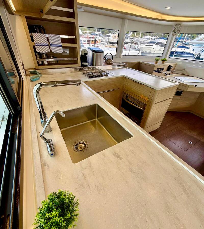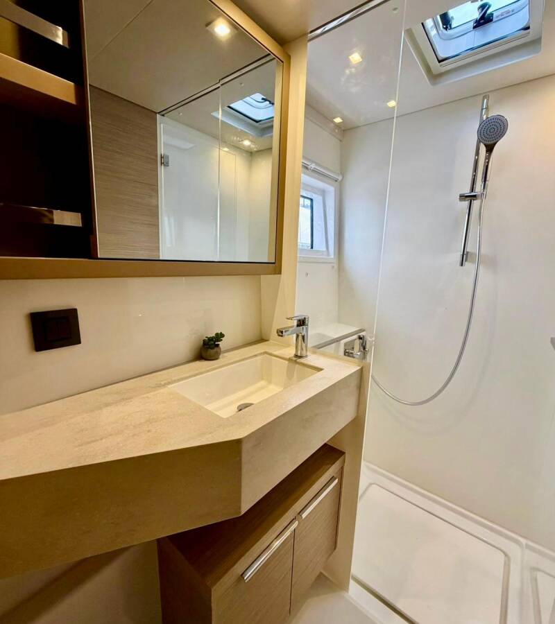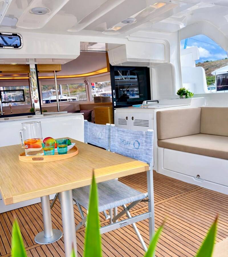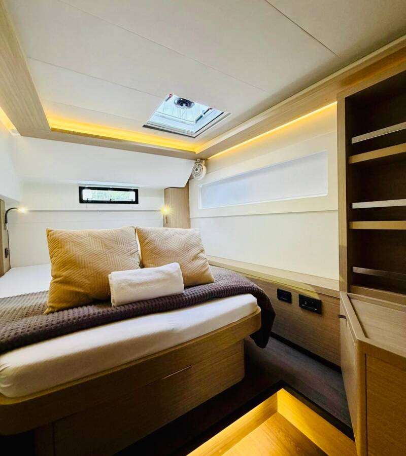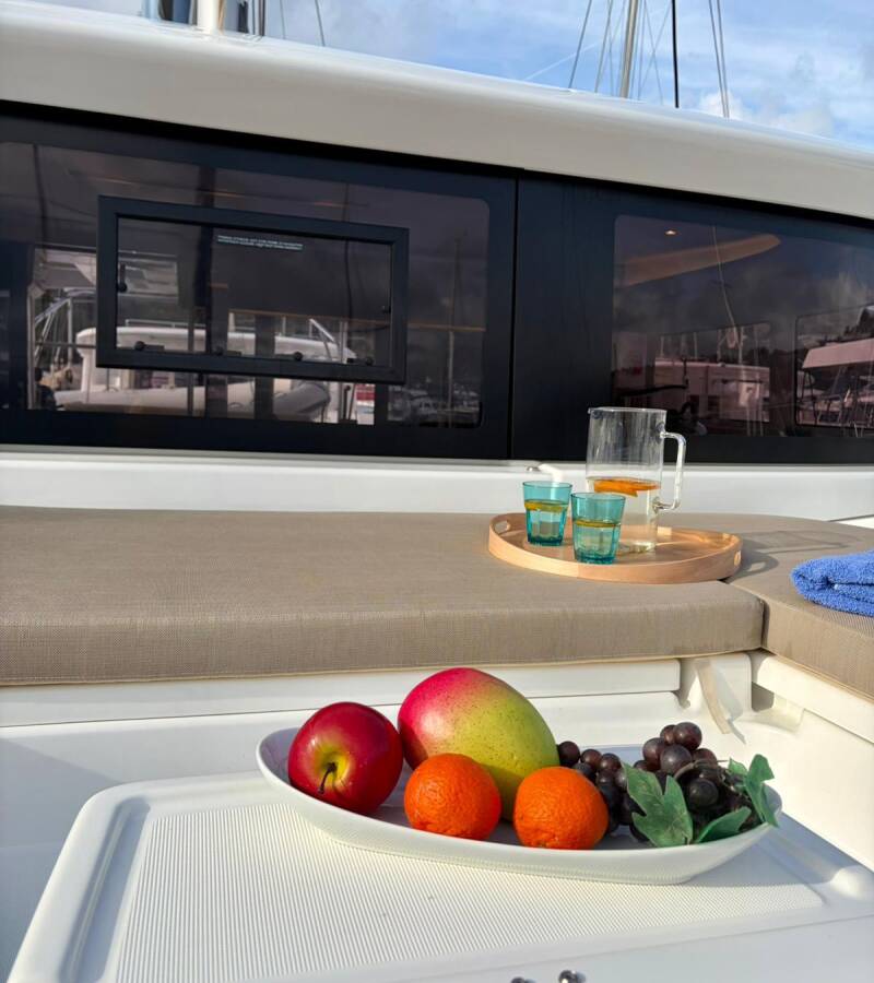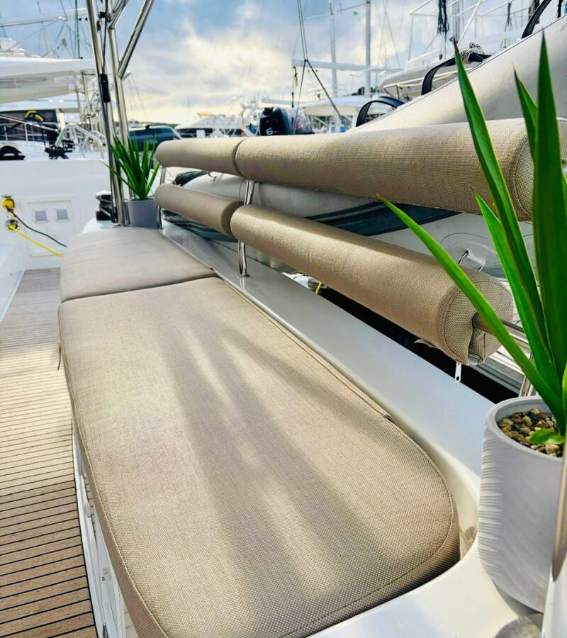 The Lagoon 46 „No Limit II“ offers special comfort with the following equipment features: Generator, Air Conditioning, Freezer, Cockpit cushions, Inverter, Electric toilet.