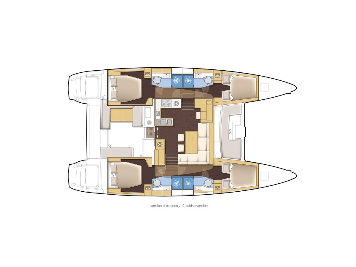 The Lagoon 46 „Spiritus“ offers special comfort with the following equipment features: Generator, Air Conditioning, Cockpit cushions, Inverter, Electric toilet, Solar panels.