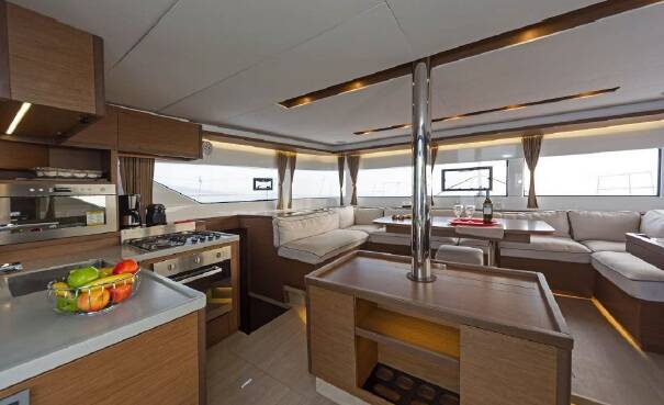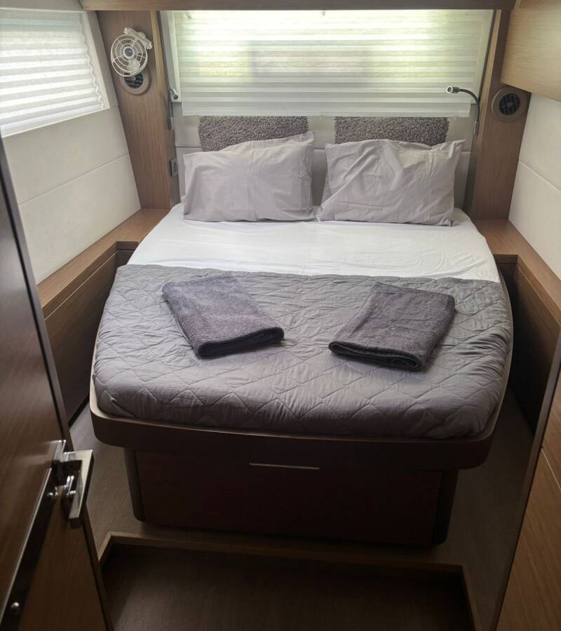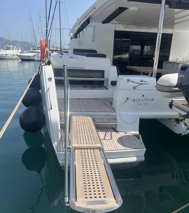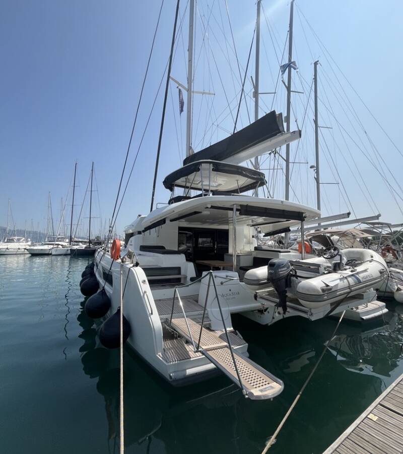 The Lagoon 50 „Aqua Star“ offers special comfort with the following equipment features: Generator, Air Conditioning, Cockpit cushions, Electric toilet, Solar panels.