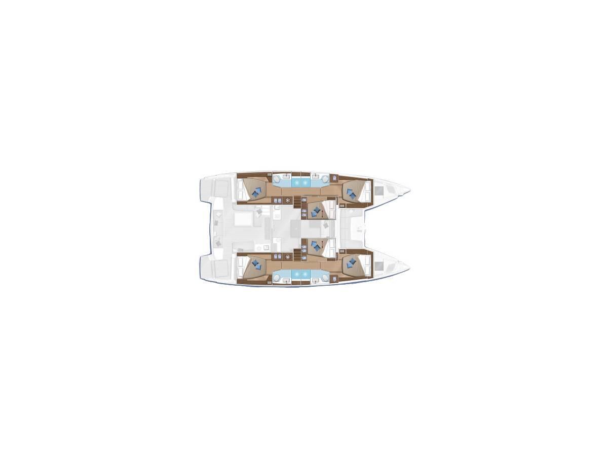 The Lagoon 50 „Merev“ is equipped with a mainsail and a genoa as well as a Bimini top, Autopilot, Heating, Teak cockpit.