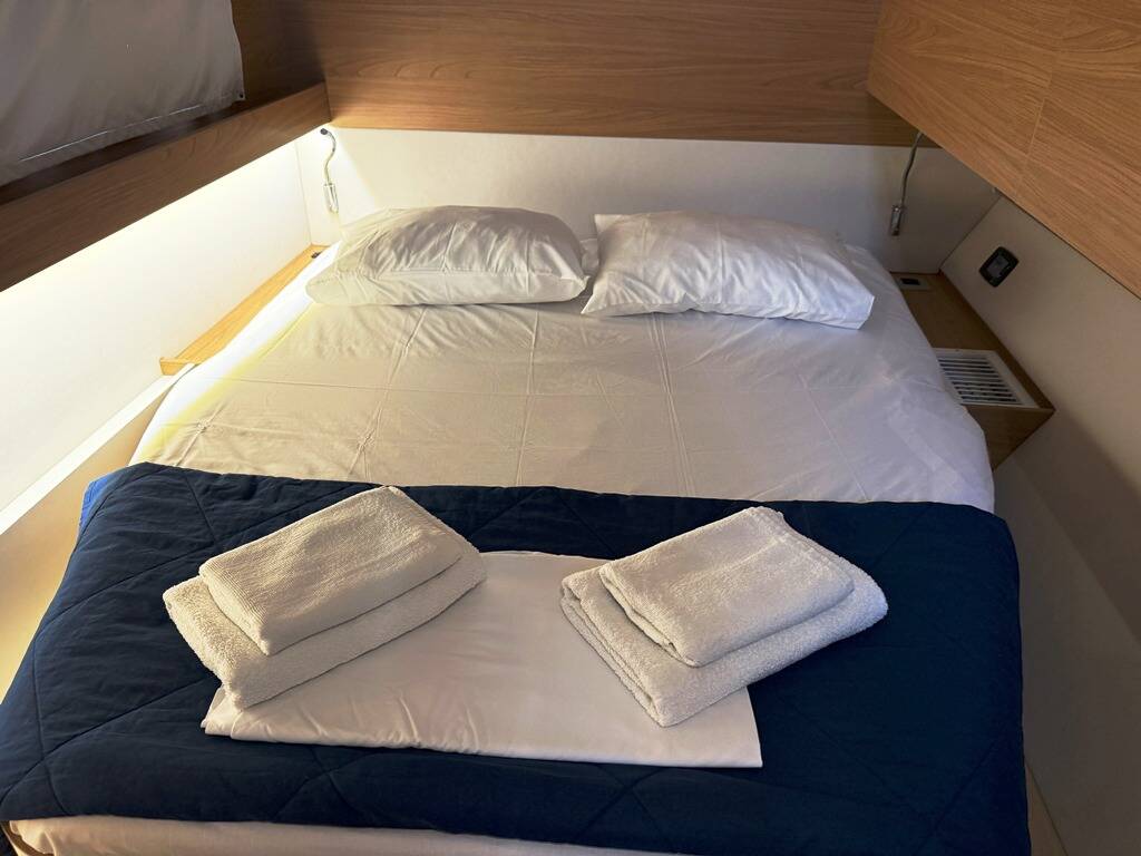 The Lagoon 50 „Pelagic Cat“ offers special comfort with the following equipment features: Bow thruster, Generator, Air Conditioning, Freezer, Cockpit cushions, Inverter, Electric toilet, Dishwasher.