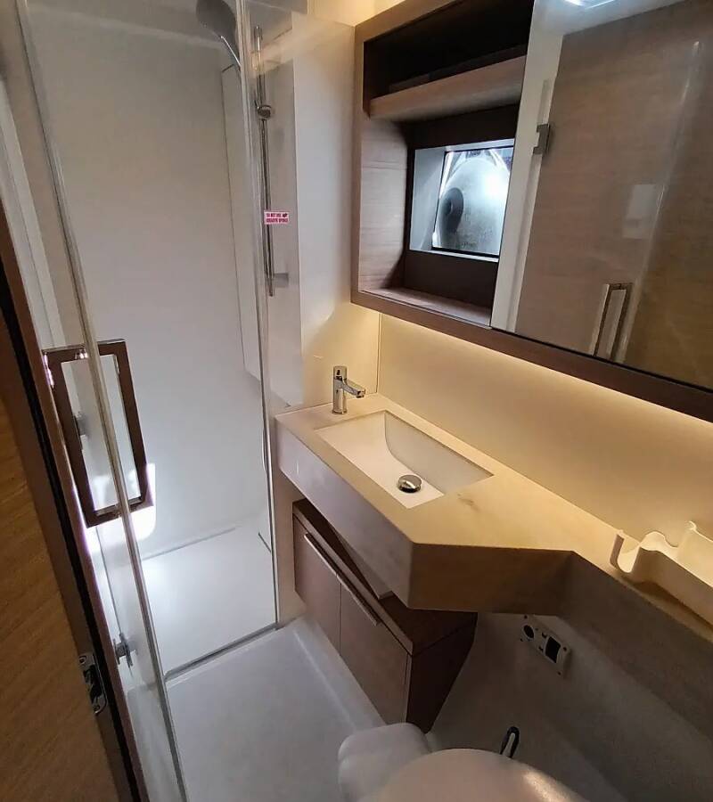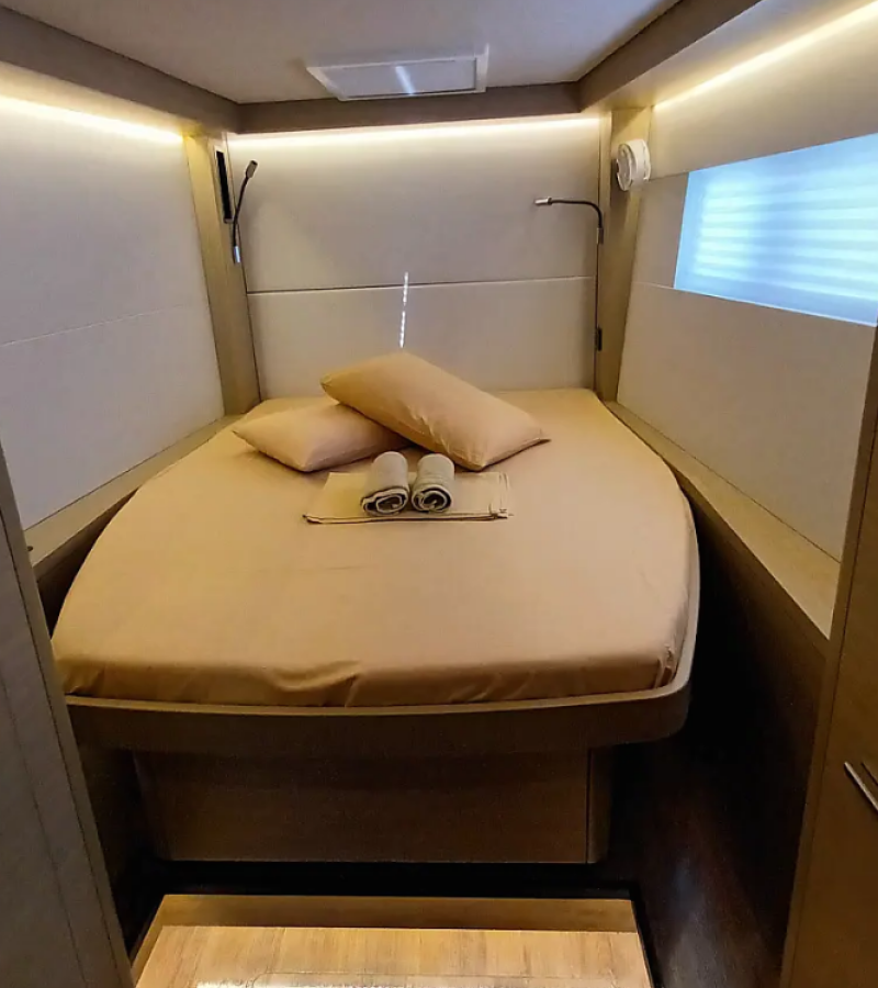 The Lagoon 51 „Errant Vagabond“ offers special comfort with the following equipment features: Air Conditioning, Bathing platform, Inverter, Electric toilet, Solar panels.