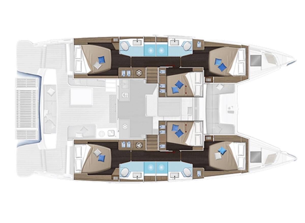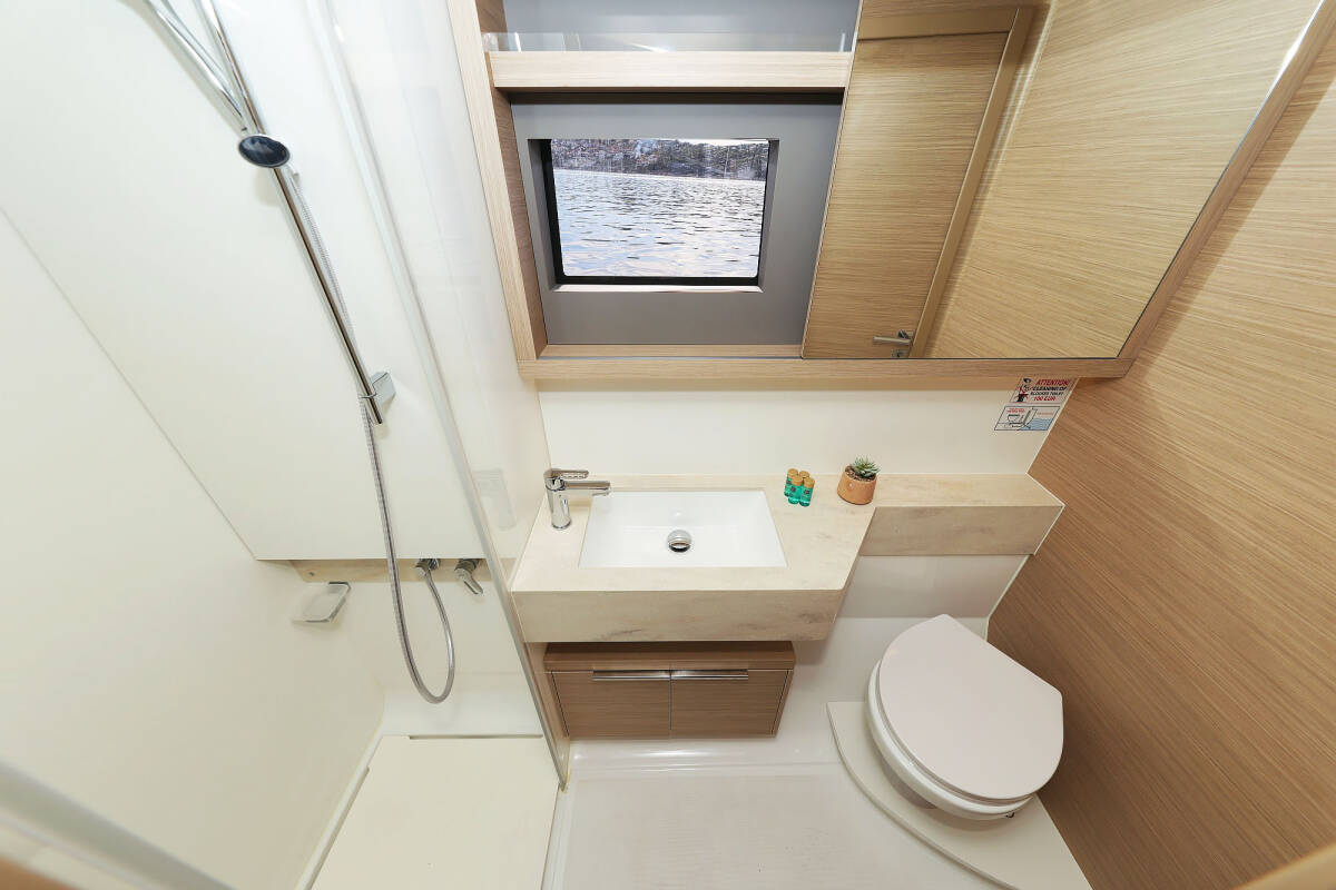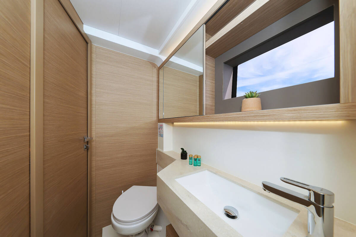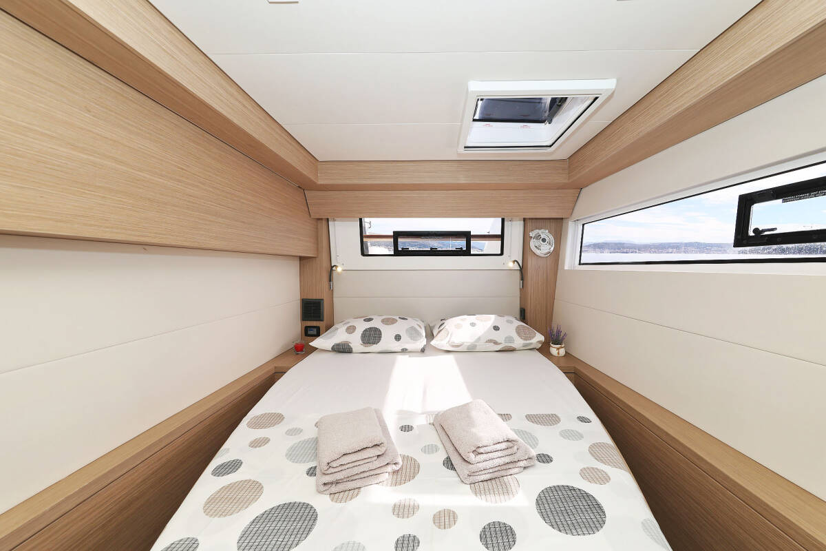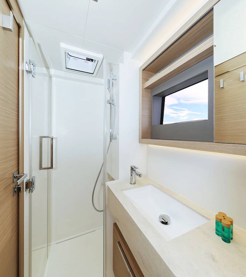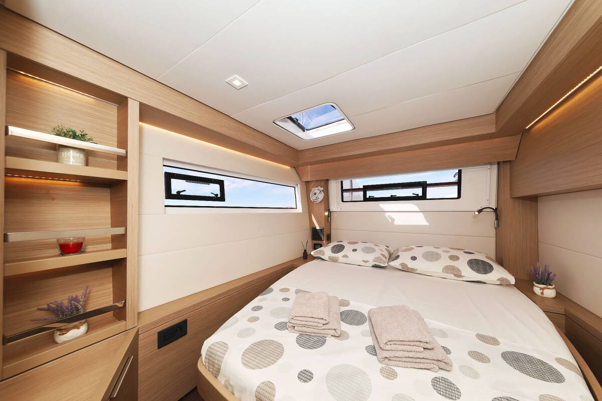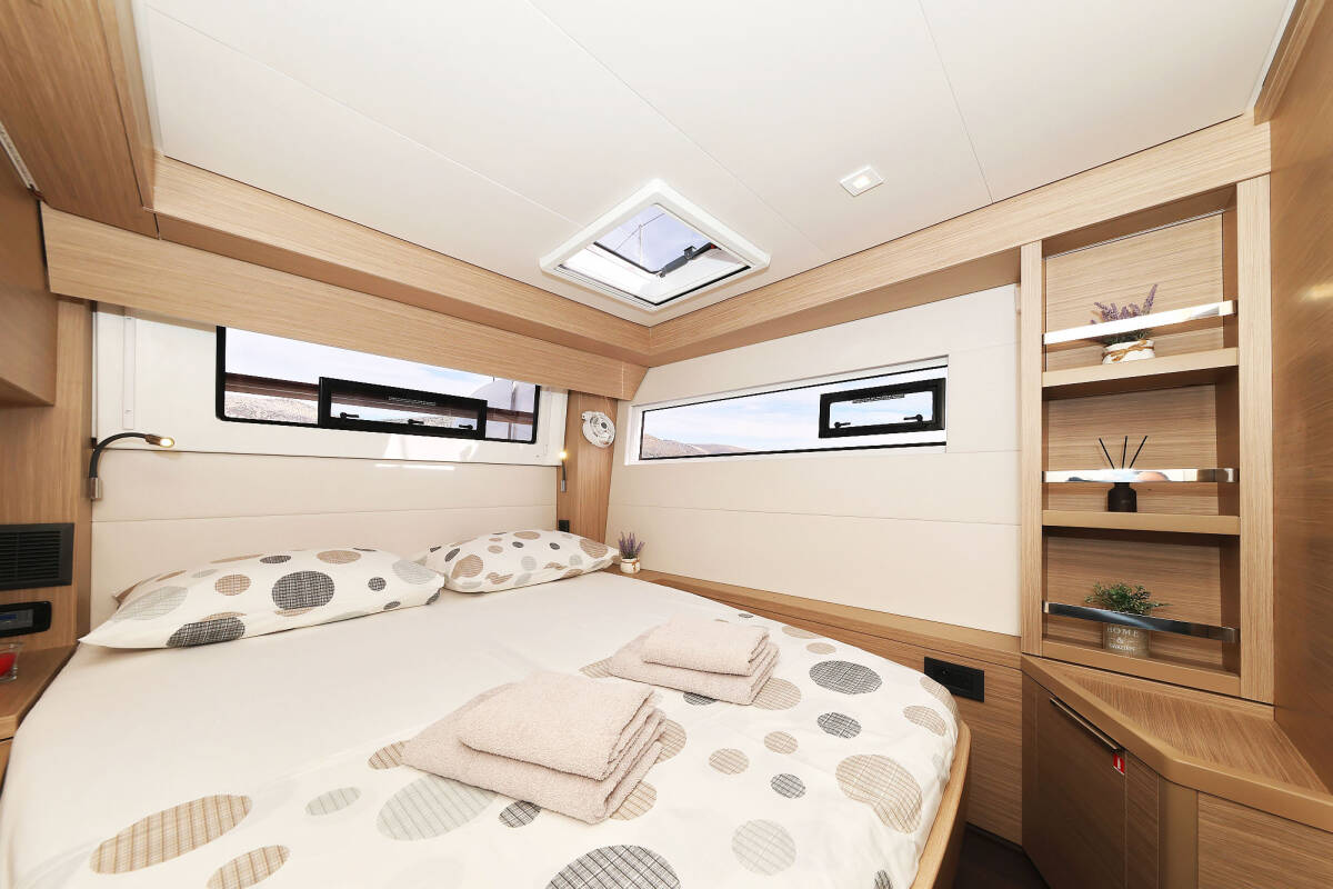 The Lagoon 51 „Maestro“ offers special comfort with the following equipment features: Bow thruster, Generator, Air Conditioning, Freezer, Bathing platform, Electric toilet, Dishwasher.