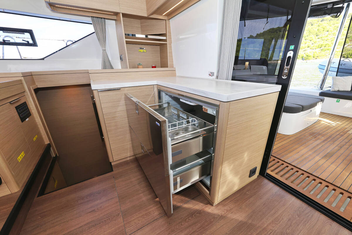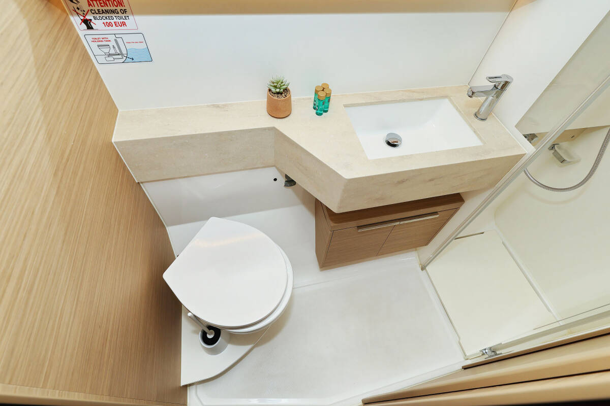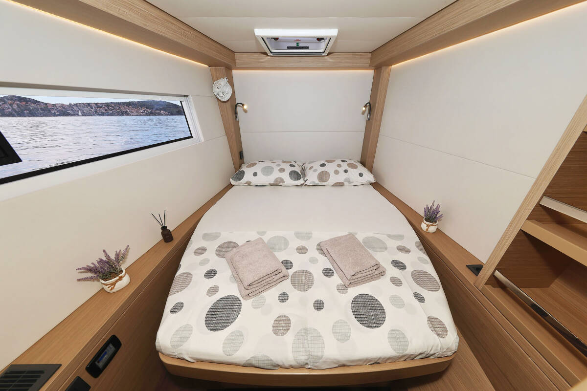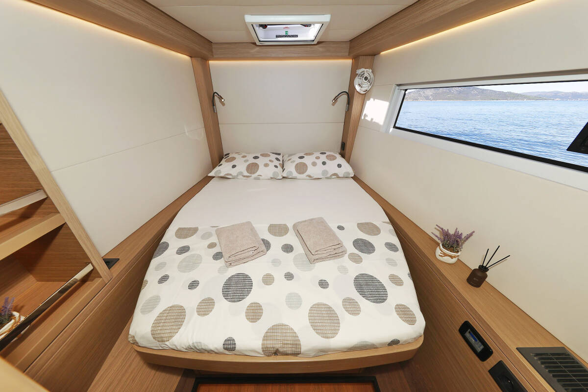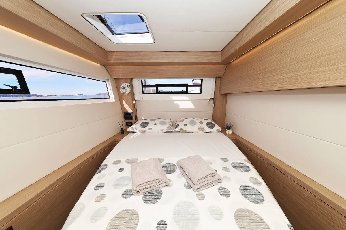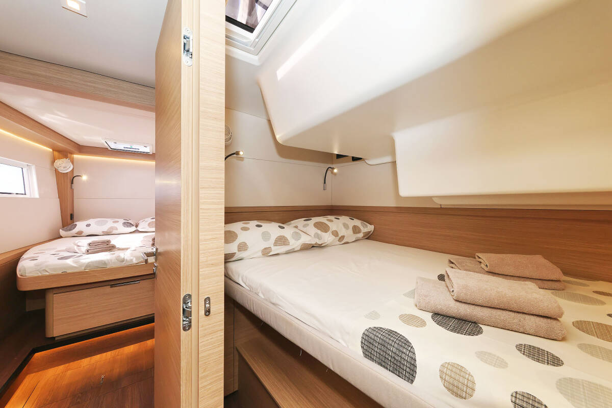 The Lagoon 51 „Maestro“ offers special comfort with the following equipment features: Bow thruster, Generator, Air Conditioning, Freezer, Bathing platform, Electric toilet, Dishwasher.