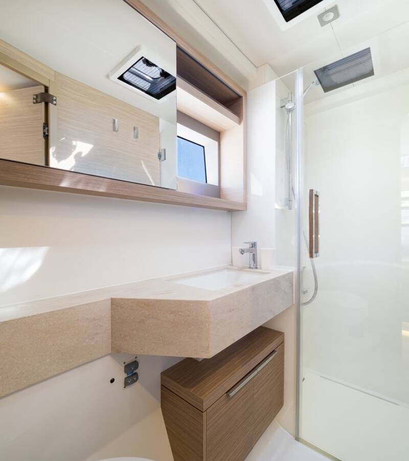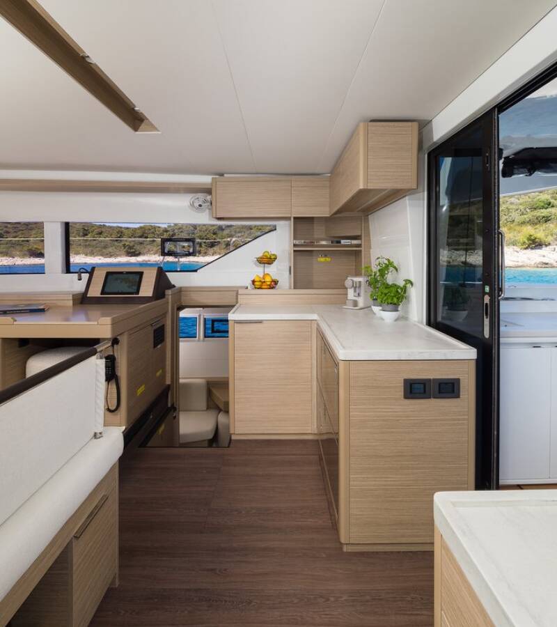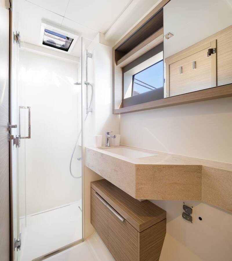 The Lagoon 51 OW „Catwalk“ offers special comfort with the following equipment features: Generator, Air Conditioning, Freezer, Cockpit cushions, Bathing platform, Inverter, Dishwasher.