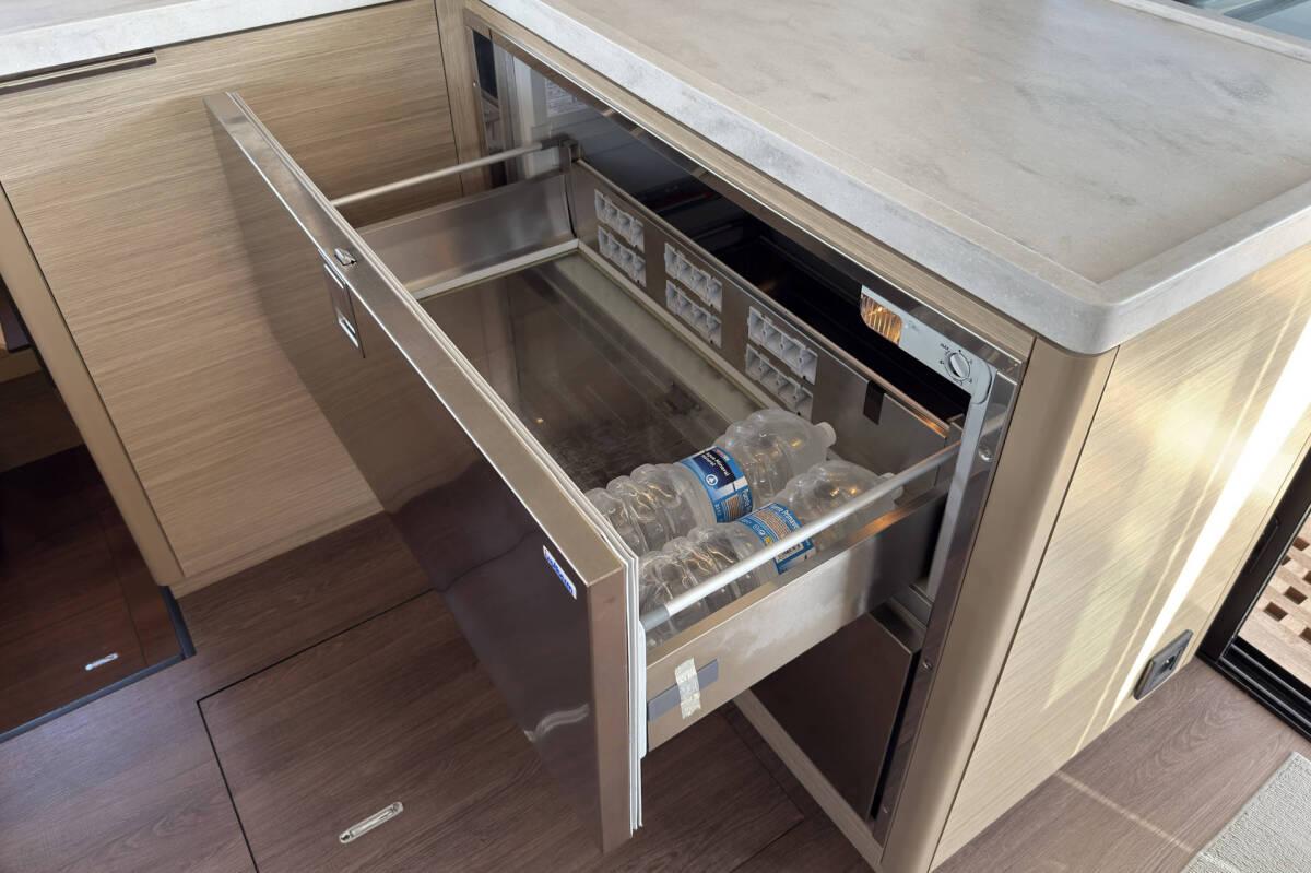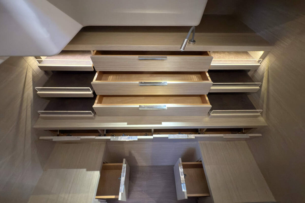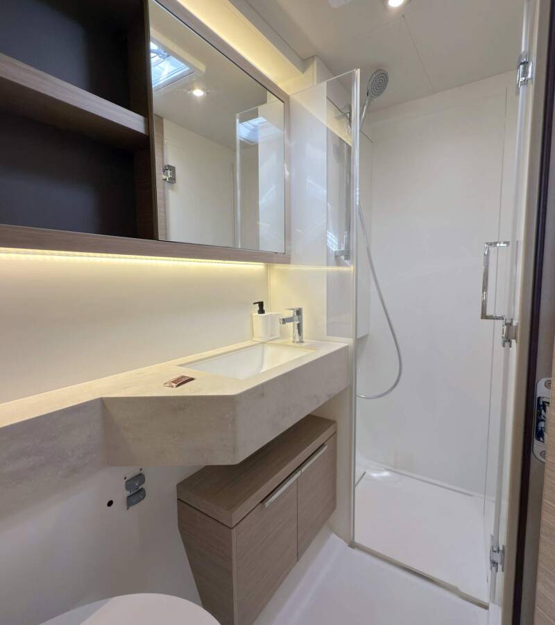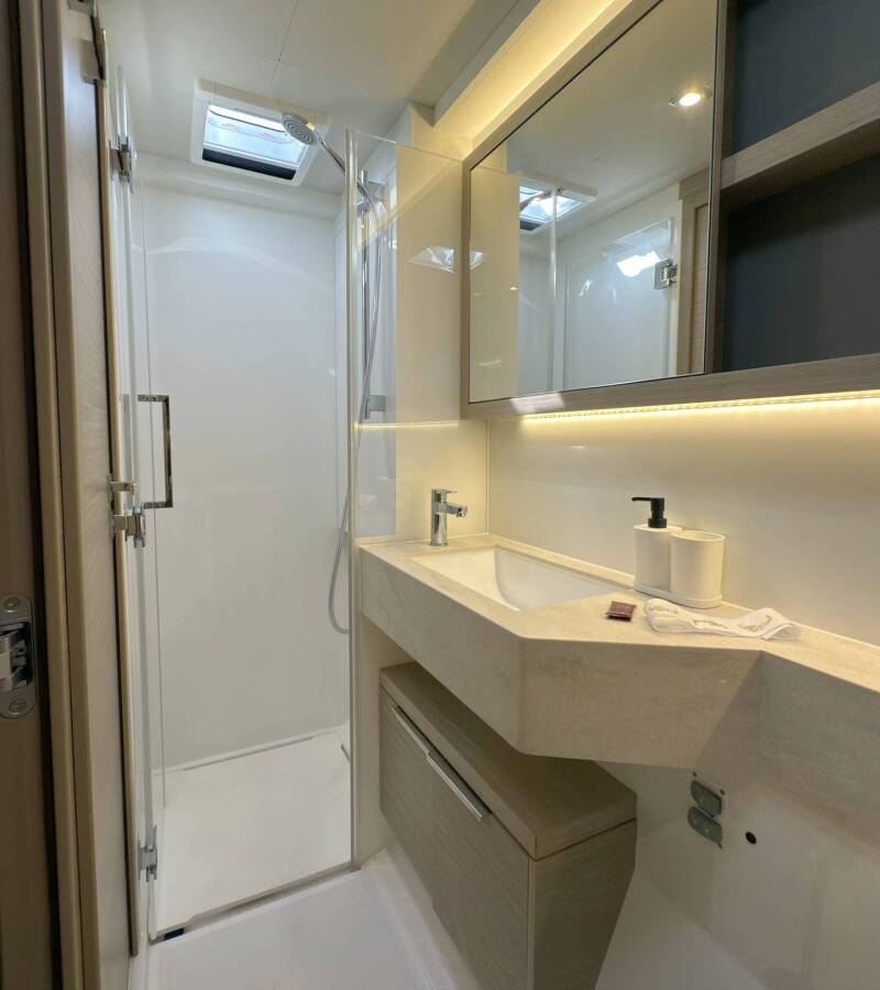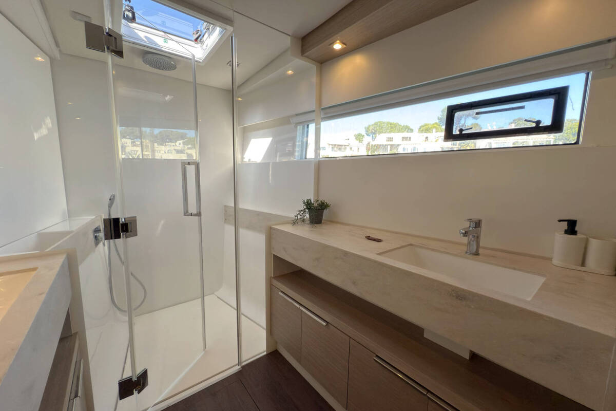 A stylish accent is set by Watermaker - desalinator, Composite steering wheels, Underwater lights.