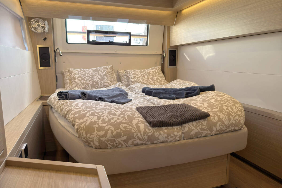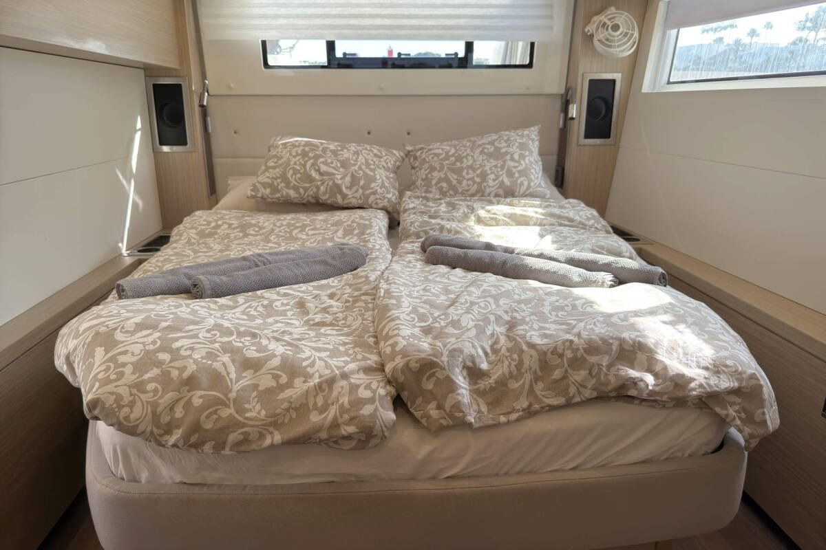 The Lagoon 51 OW „Selanja“ is equipped with a mainsail and a genoa as well as a Radar, Bimini top, Autopilot, Sprayhood, Heating, Teak cockpit.