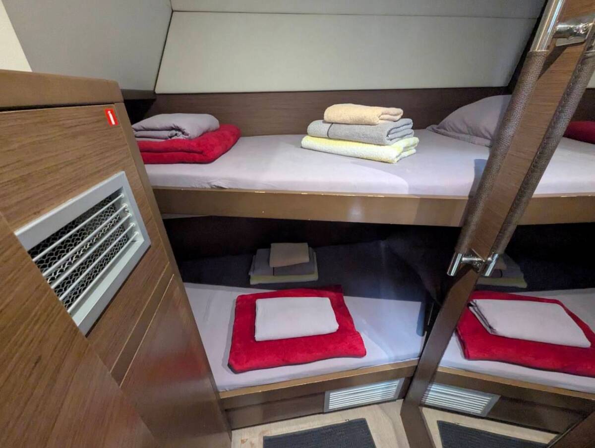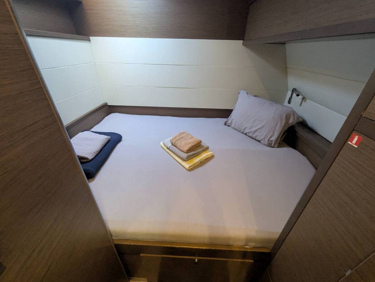 The Lagoon 52 F „EDELEM II “ is equipped with a mainsail and a genoa as well as a Bimini top, Autopilot.
