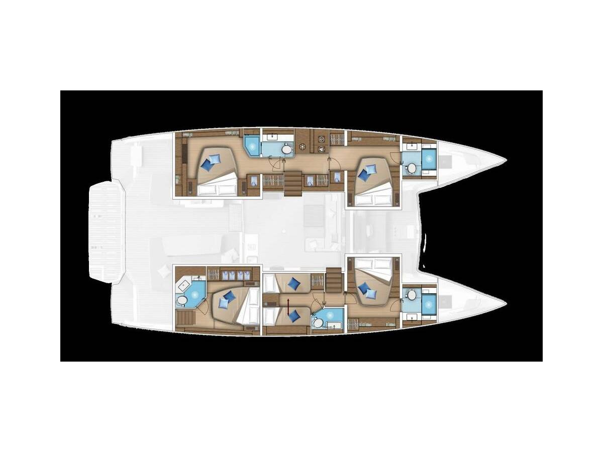 The Lagoon 55 „Smiley“ offers special comfort with the following equipment features: Generator, Air Conditioning, Inverter, Solar panels.