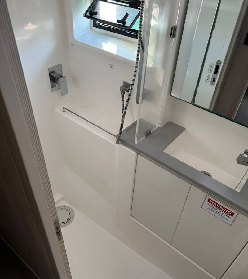 The Leopard 434 PC „Aquaholic“ is equipped with a Bimini top, Autopilot.