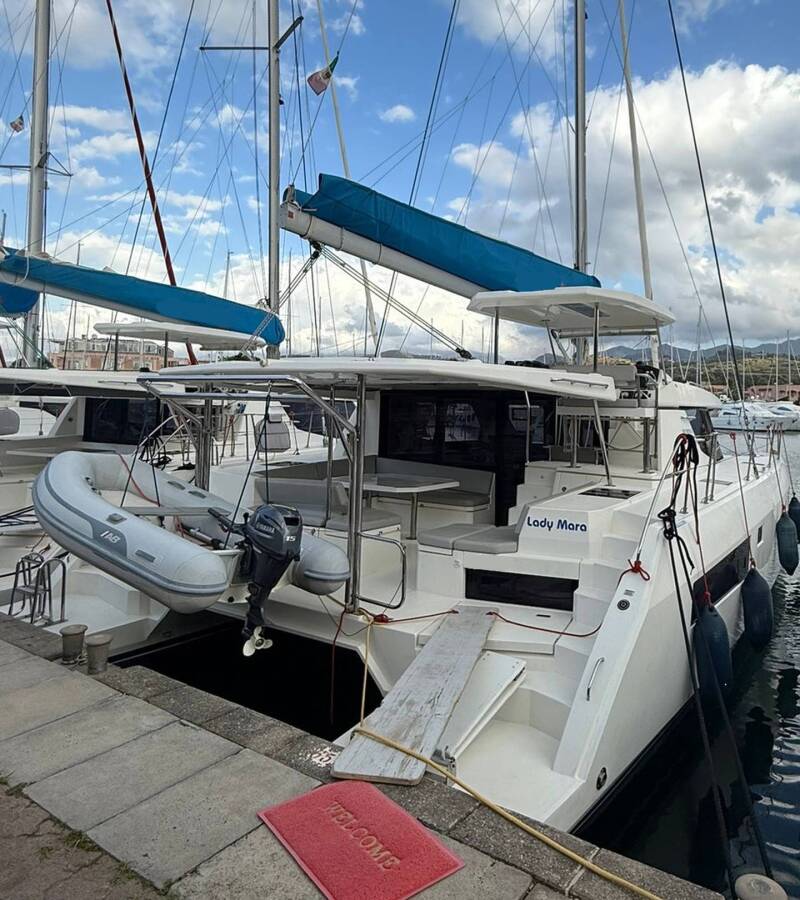 The Catamaran Leopard 45 „Lady Mara“, built in 2020, is moored in Mallorca, Can Pastilla - Spain. The yacht has 4 + 1 cabins, can accomodate 8 + 2 + 1 persons and has 4 + 1 toilets/showers.